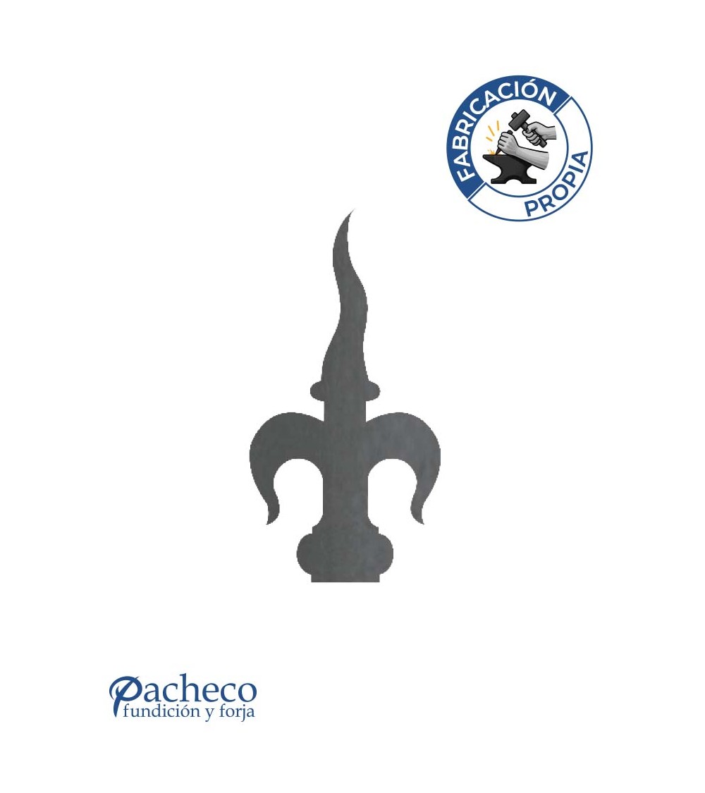 · Remate de chapa de hierro con diseño tipo flor de lis con punta en llama, fabricado mediante corte láser de precisión en nuestro taller.