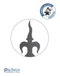 Remate de chapa de hierro con diseño tipo flor de lis y punta en forma de llama, fabricado mediante corte láser en nuestro taller. Ideal para rejas, portones y barrotes de forja con referencia 19526: