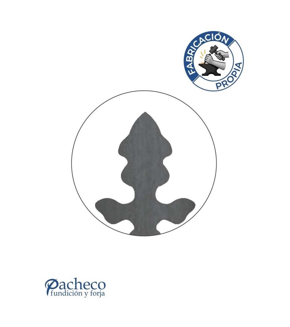 · Este adorno se utiliza como remate o elemento decorativo en rejas, cancelas, barandillas y puertas de forja, aportando un acabado artesanal y equilibrado.
