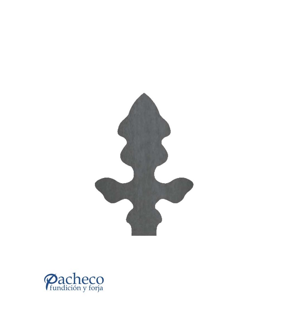 Remate de chapa de hierro con figura simétrica, fabricado mediante corte láser en nuestro taller. Ideal para rejas, cancelas y barandillas de forja decorativa con referencia 19537:
