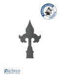 Remate de chapa de hierro con diseño tipo flor de lis, cortado por láser en nuestro taller, utilizado como adorno o remate decorativo para barrotes, rejas y portones de forja con referencia 19523: