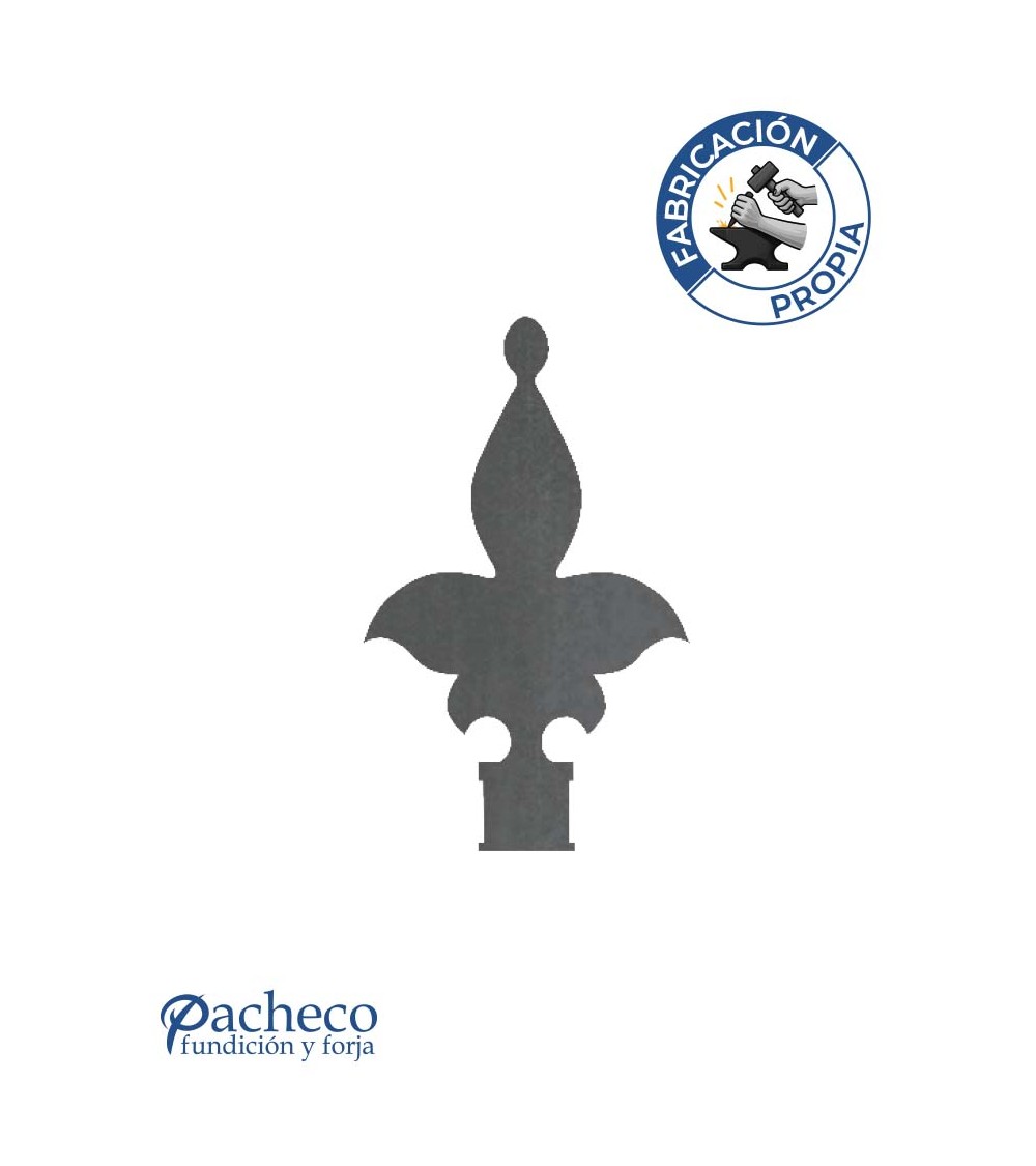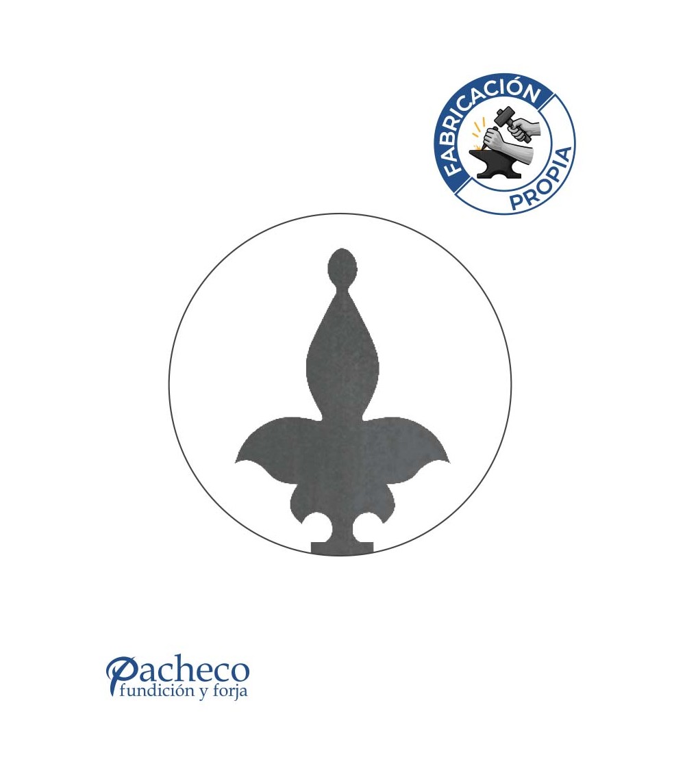 · Remate de chapa de hierro con diseño clásico tipo flor de lis, fabricado mediante corte láser de alta precisión en nuestro taller.