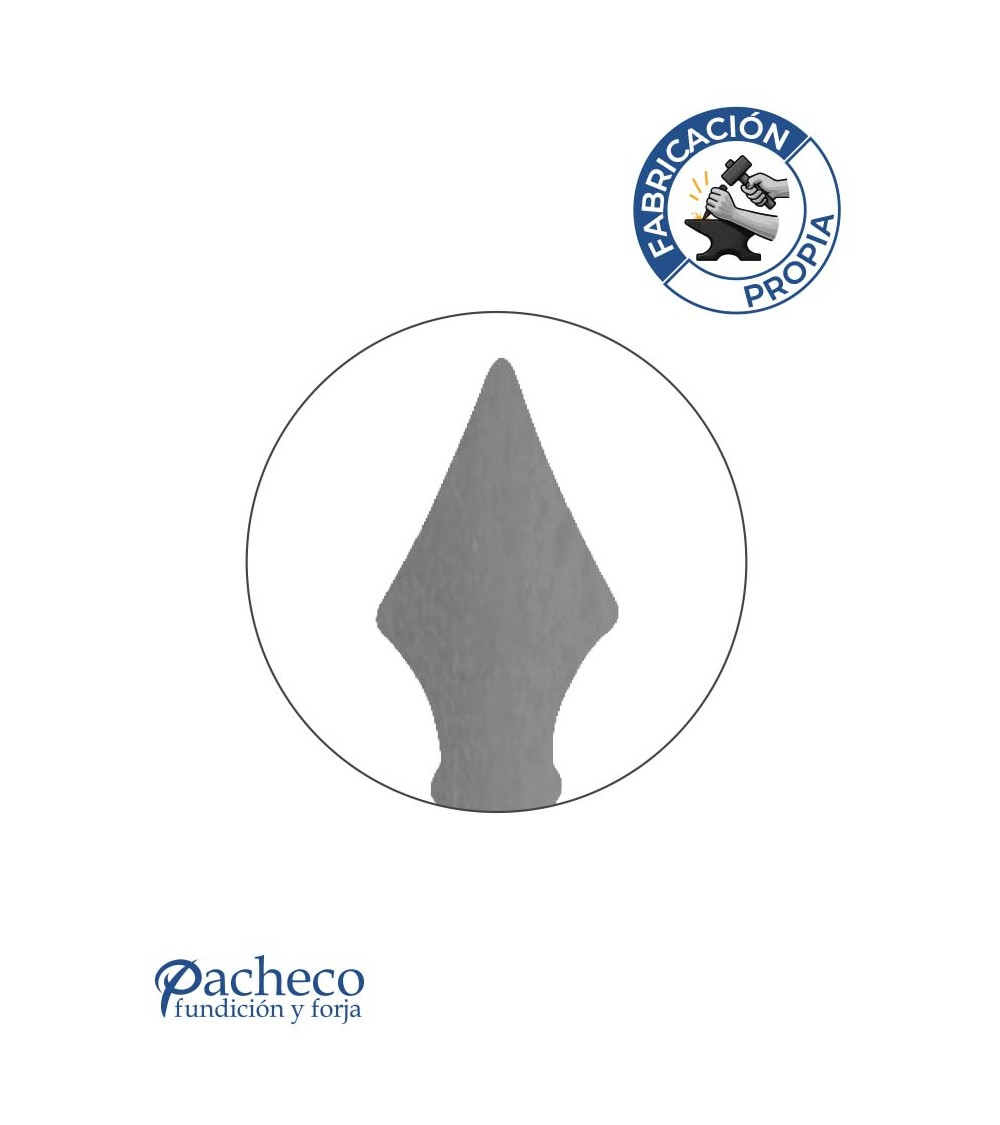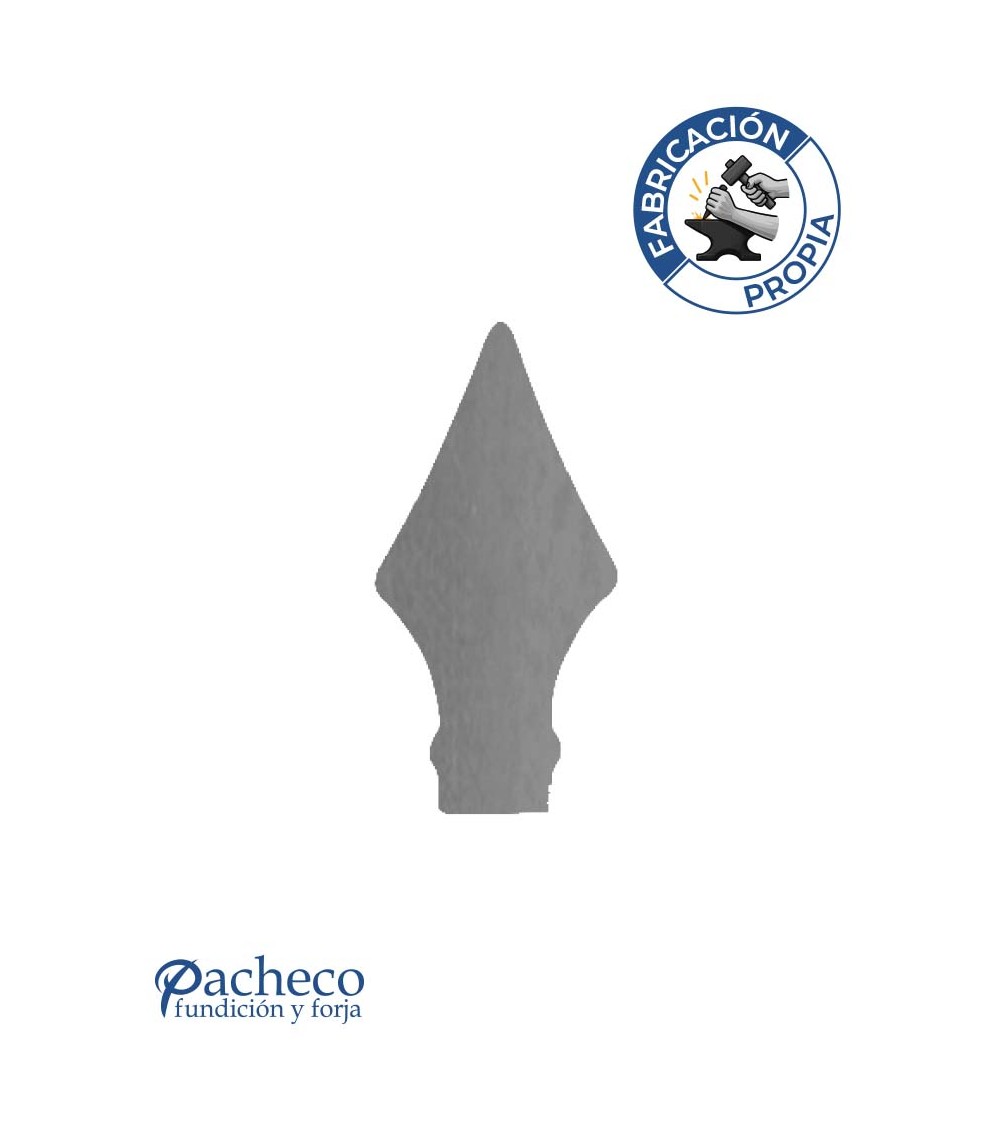 Remate de chapa de hierro con diseño clásico de punta de lanza, fabricado mediante corte láser en nuestro taller. Ideal para rejas, portones, cancelas y barandillas de forja con referencia 19530: