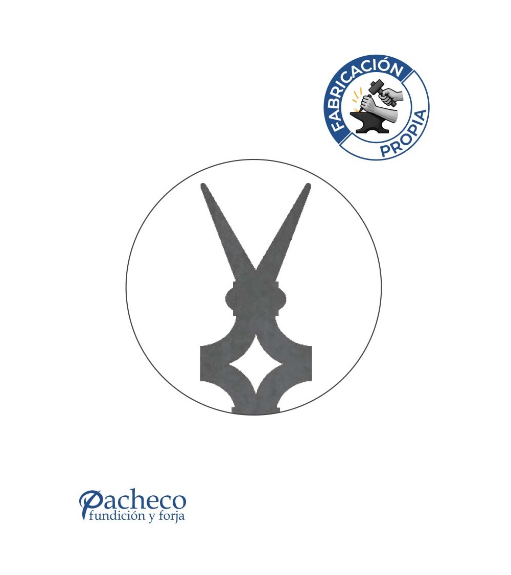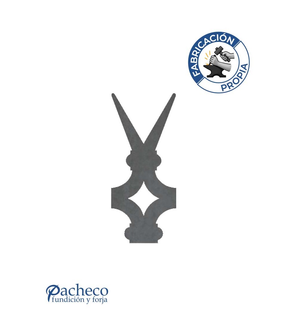 · Remate de chapa de hierro con diseño decorativo de puntas cruzadas, fabricado mediante corte láser de precisión en nuestro taller.