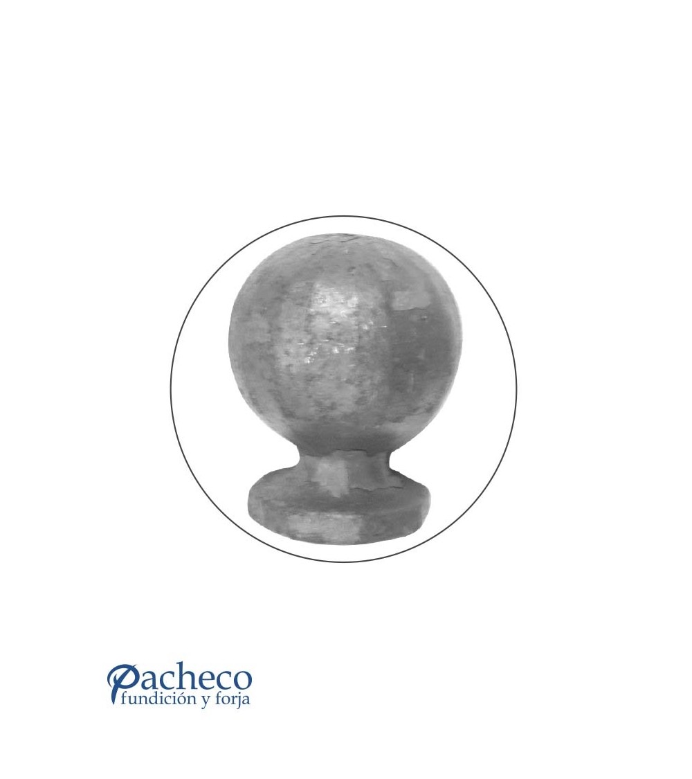 Remate de hierro forjado en forma de bola utilizado como remate de forja decorativa. Fabricado con hierro dulce, maleable y forjado en caliente para la sujeción de rejas o vallas de hierro forjado con referencia 07005, referencia 07006, referencia 07007 y referencia 07008: