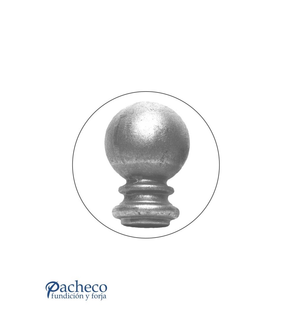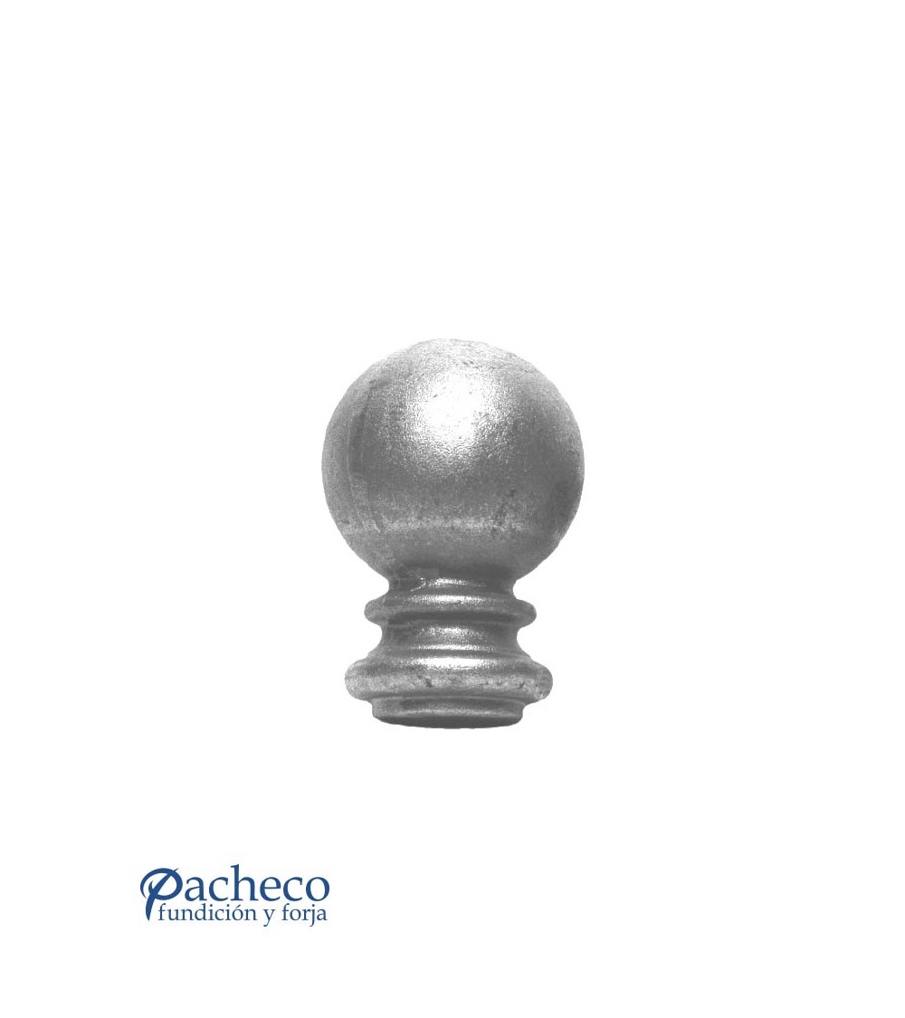 Remate de hierro forjado en forma de bola utilizado como remate de forja decorativa. Fabricado con hierro dulce, maleable y forjado en caliente para la sujeción de rejas o vallas de hierro forjado con referencia 07001 y referencia 07002: