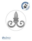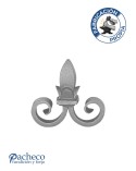 Remate de forja labrado utilizado como remate de forja decorativa fabricado con hierro dulce, maleable y forjado en caliente. Este accesorio en hierro forjado se utiliza como remate en barrotes de forja, verjas de forja o adornos de forja para rejas. Se combina con balaustres de pletina o cuadrado. El diseño es una composición de caracoles o espirales de forja. La medida estándar es de 145 mm alto x 150 mm ancho. Piezas y accesorios para forja a medida, también realizamos cualquier diseño de forja decorativa y forja artística. Consulta a nuestro equipo de diseño especializado. Aquí los límites del metal, los pones tú. Llámanos para informarte al 923 24 33 98 o escríbenos a info@pachecoforja.com