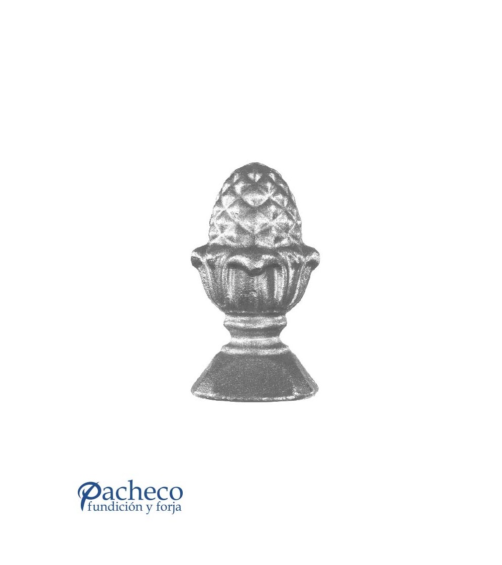 Remate de hierro forjado en forma de piña utilizado como remate de forja decorativa. Fabricado con hierro dulce, maleable y forjado en caliente para la sujeción de rejas o vallas de hierro forjado con referencia 07023.02: