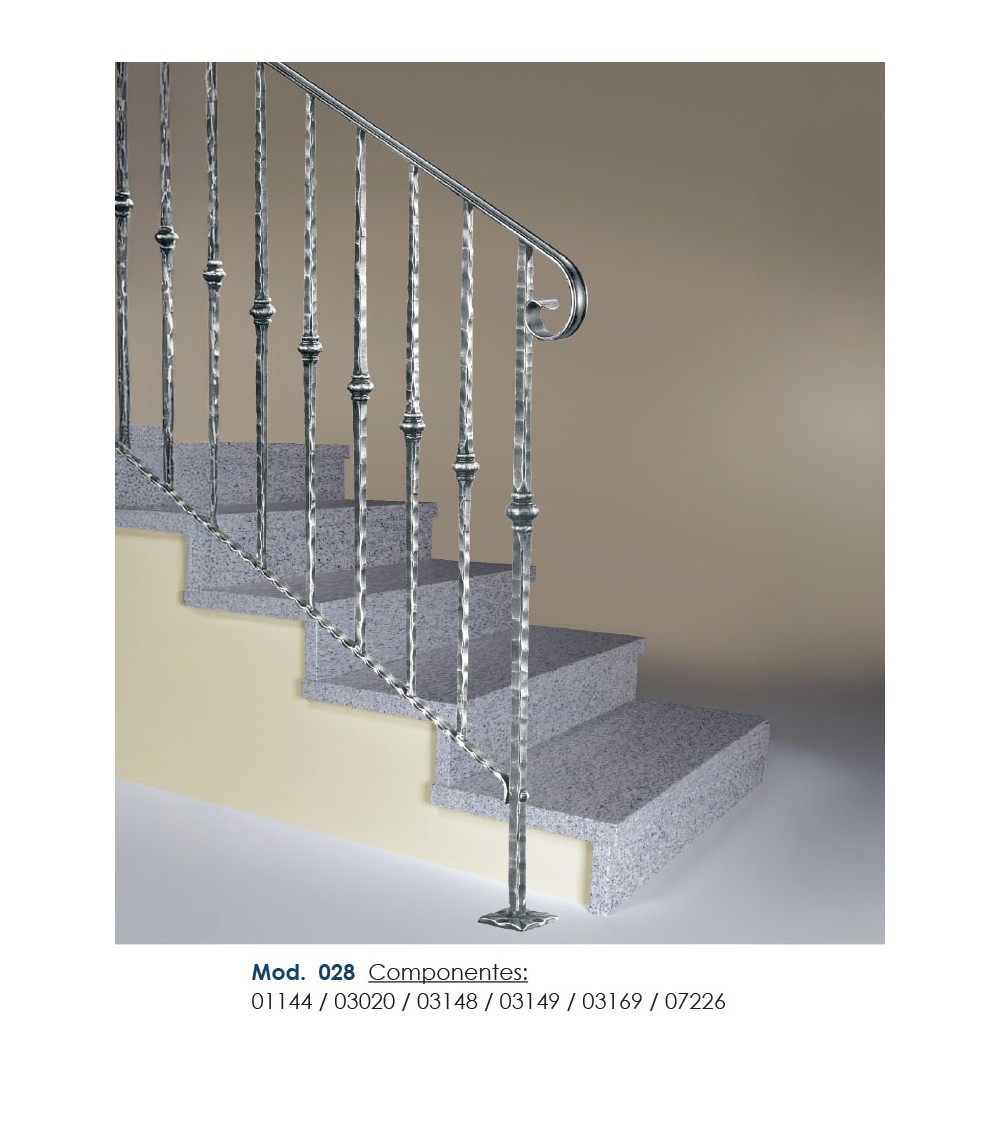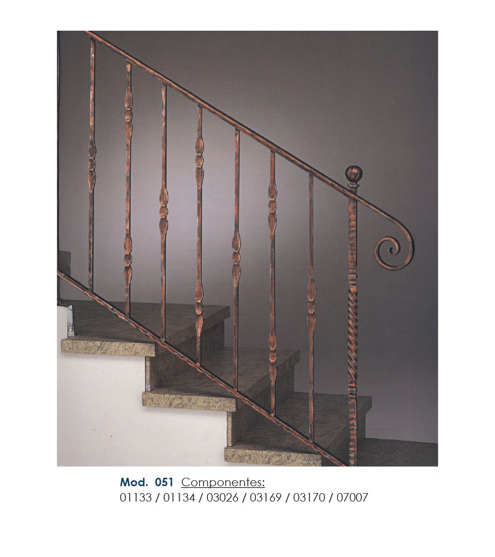 Pasamanos de hierro forjado utilizado como forja decorativa fabricado con hierro dulce, maleable y forjado en caliente para el montaje de barandales o barandillas con referencia 03167, referencia 03168 y referencia 03169: