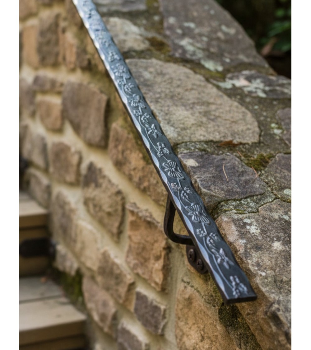 Pasamanos de Forja con Estampación Animada y Cantos Labrados Pletina 40x8 mm