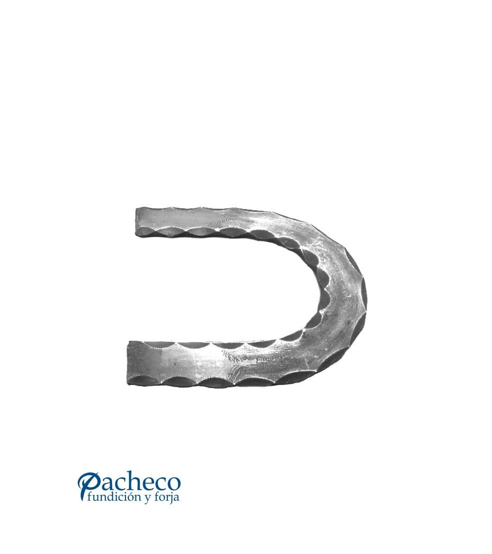 Curva de hierro forjado utilizado como forja decorativa. Fabricado con hierro dulce, maleable y forjado en caliente. Para el montaje de barandales o barandillas con referencia 03189.04: