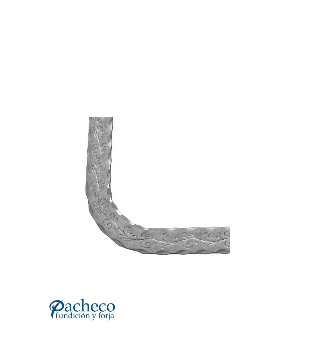 Pasamanos de Forja en Curva con Estampación Floral y Cantos Labrados A 90º Pletina 40x8 mm