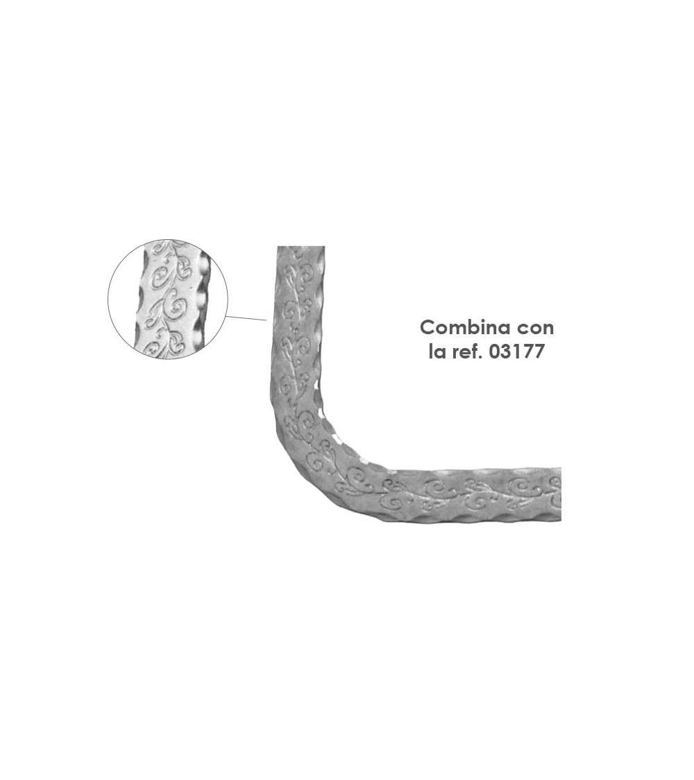 Curva de hierro forjado utilizado como forja decorativa. Fabricado con hierro dulce, maleable y forjado en caliente. Para el montaje de barandales o barandillas con referencia 03186: