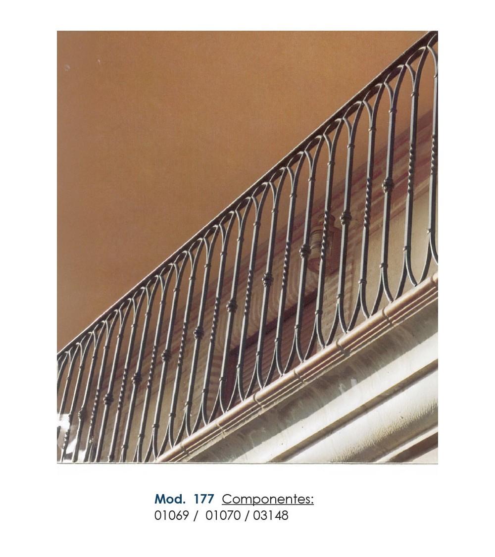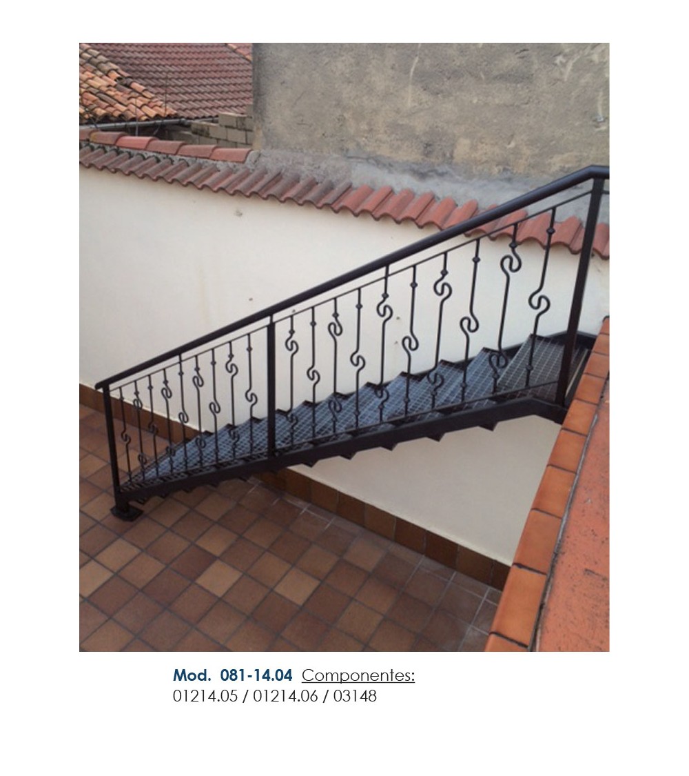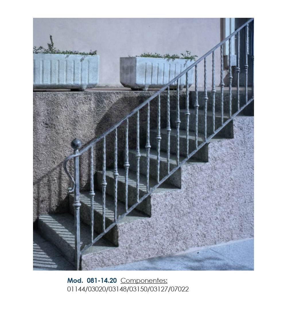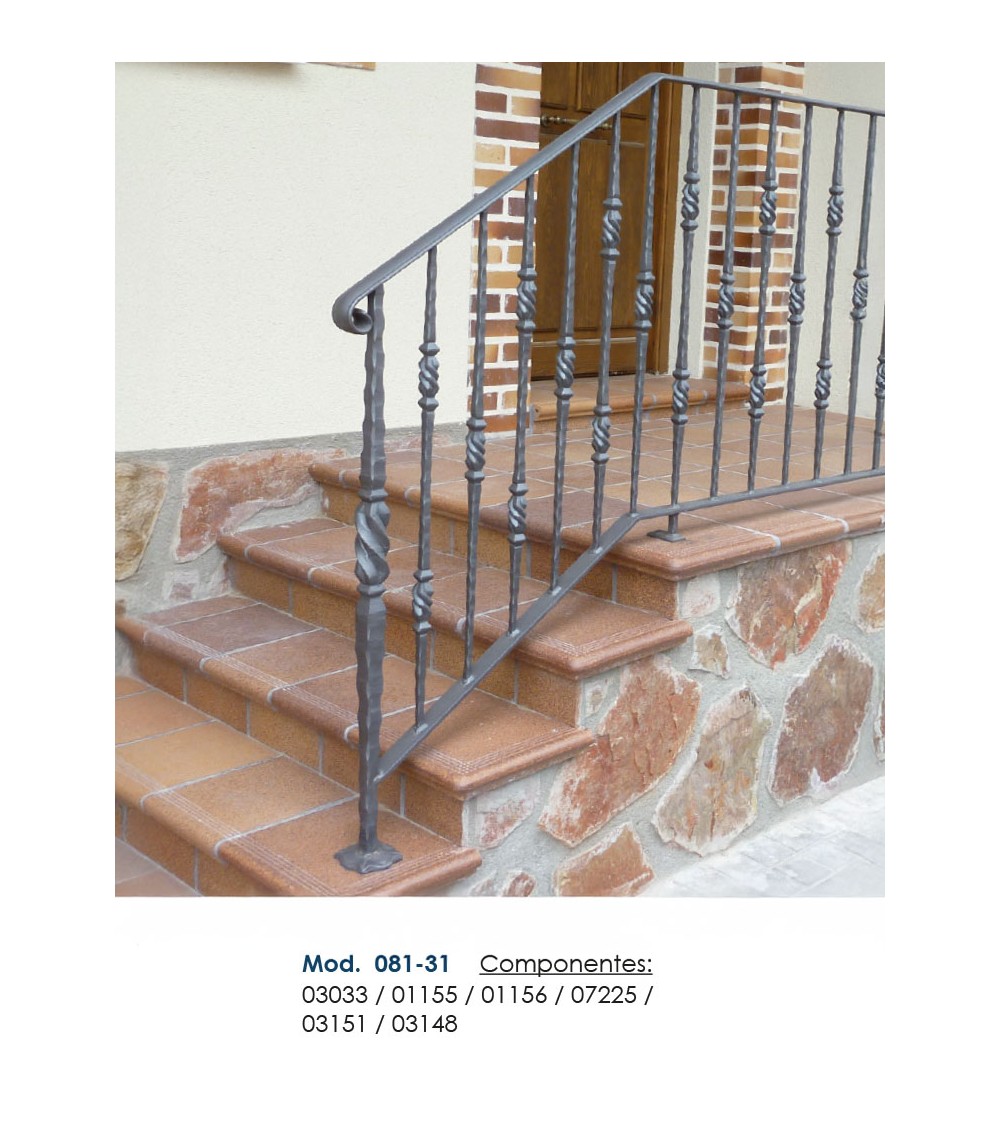 Pasamanos de hierro forjado utilizado como forja decorativa fabricado con hierro dulce, maleable y forjado en caliente para el montaje de barandales o barandillas con referencia 03148 y referencia 03148.03: