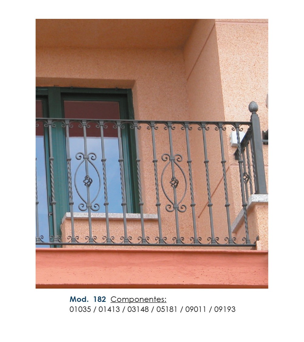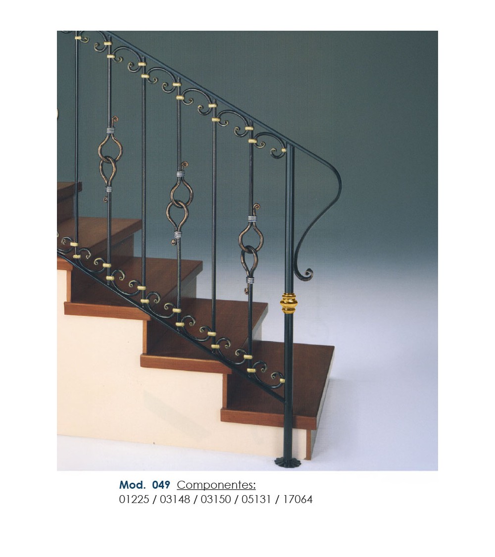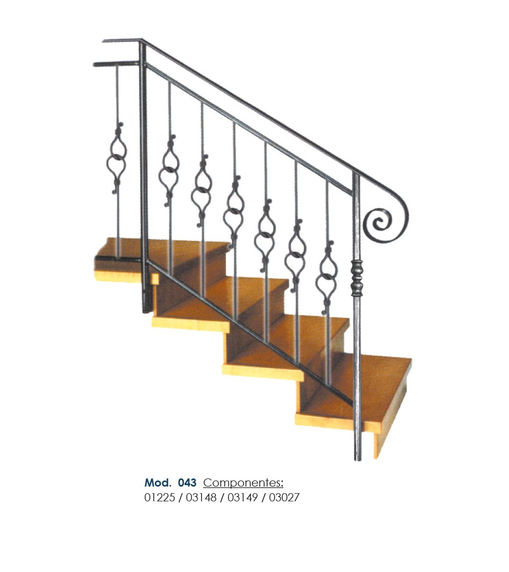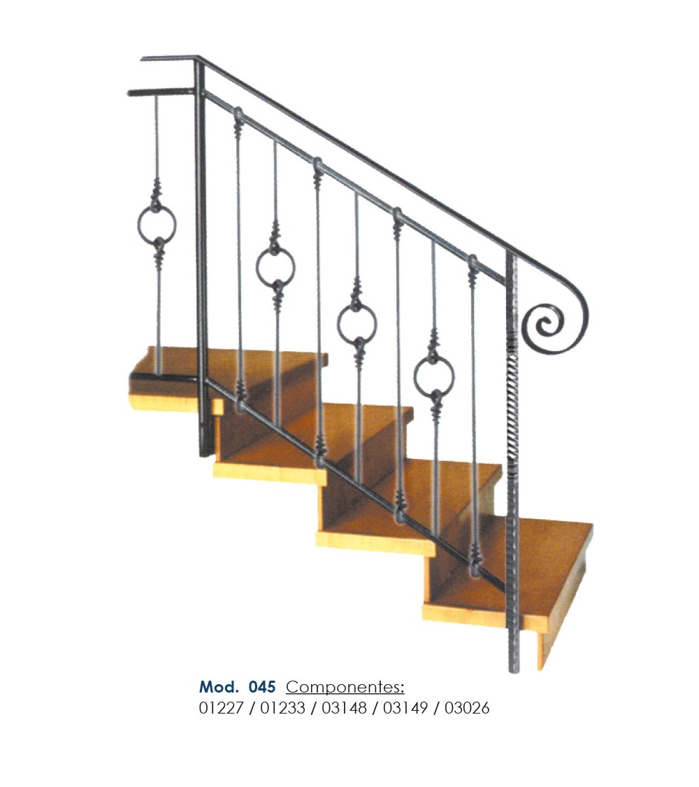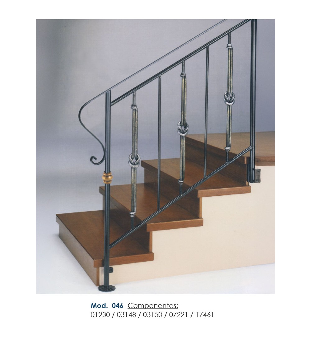 Pasamanos de hierro forjado utilizado como forja decorativa fabricado con hierro dulce, maleable y forjado en caliente para el montaje de barandales o barandillas con referencia 03148 y referencia 03148.03: