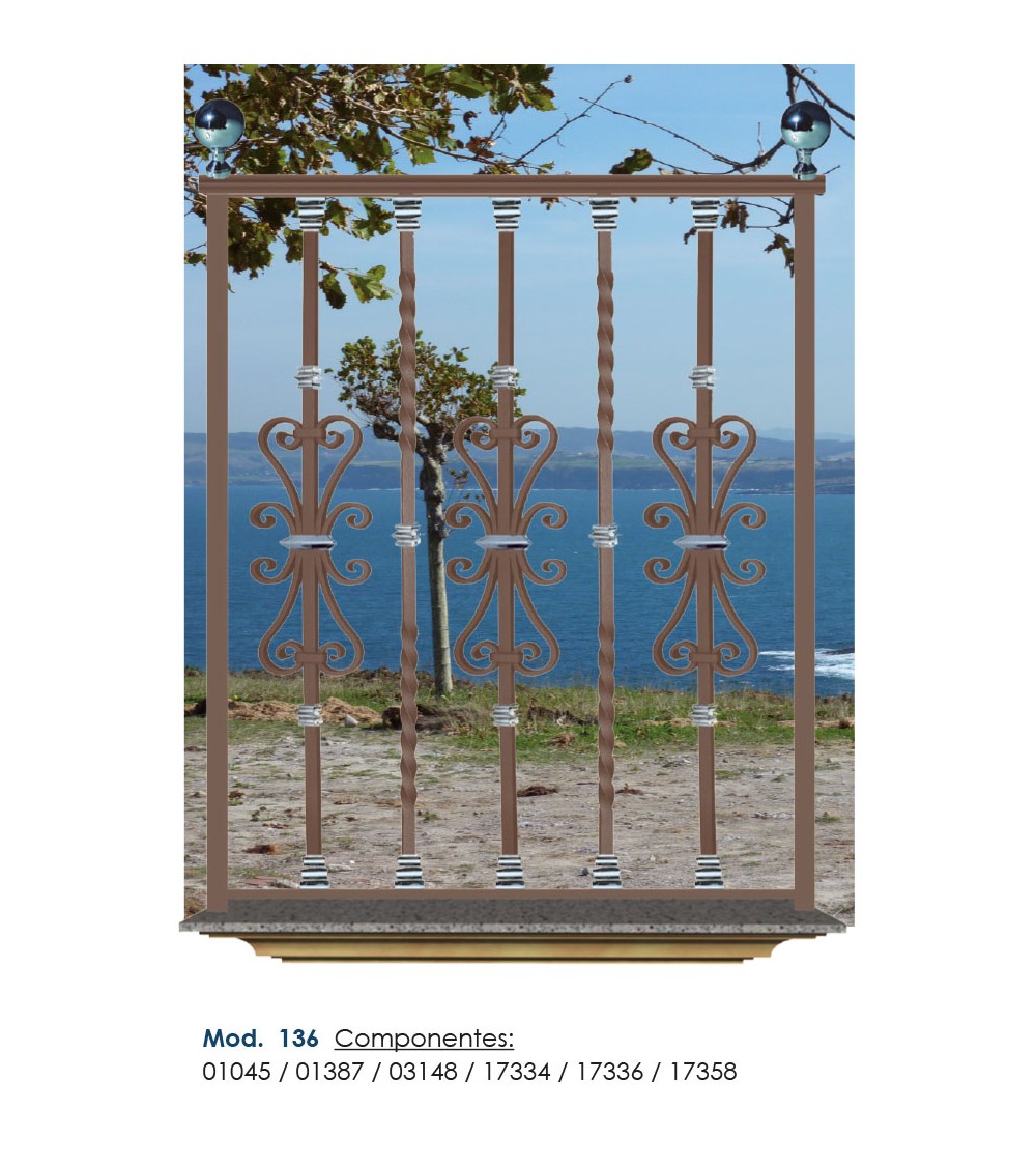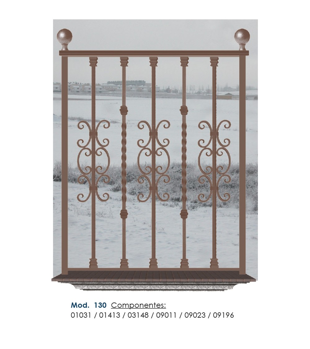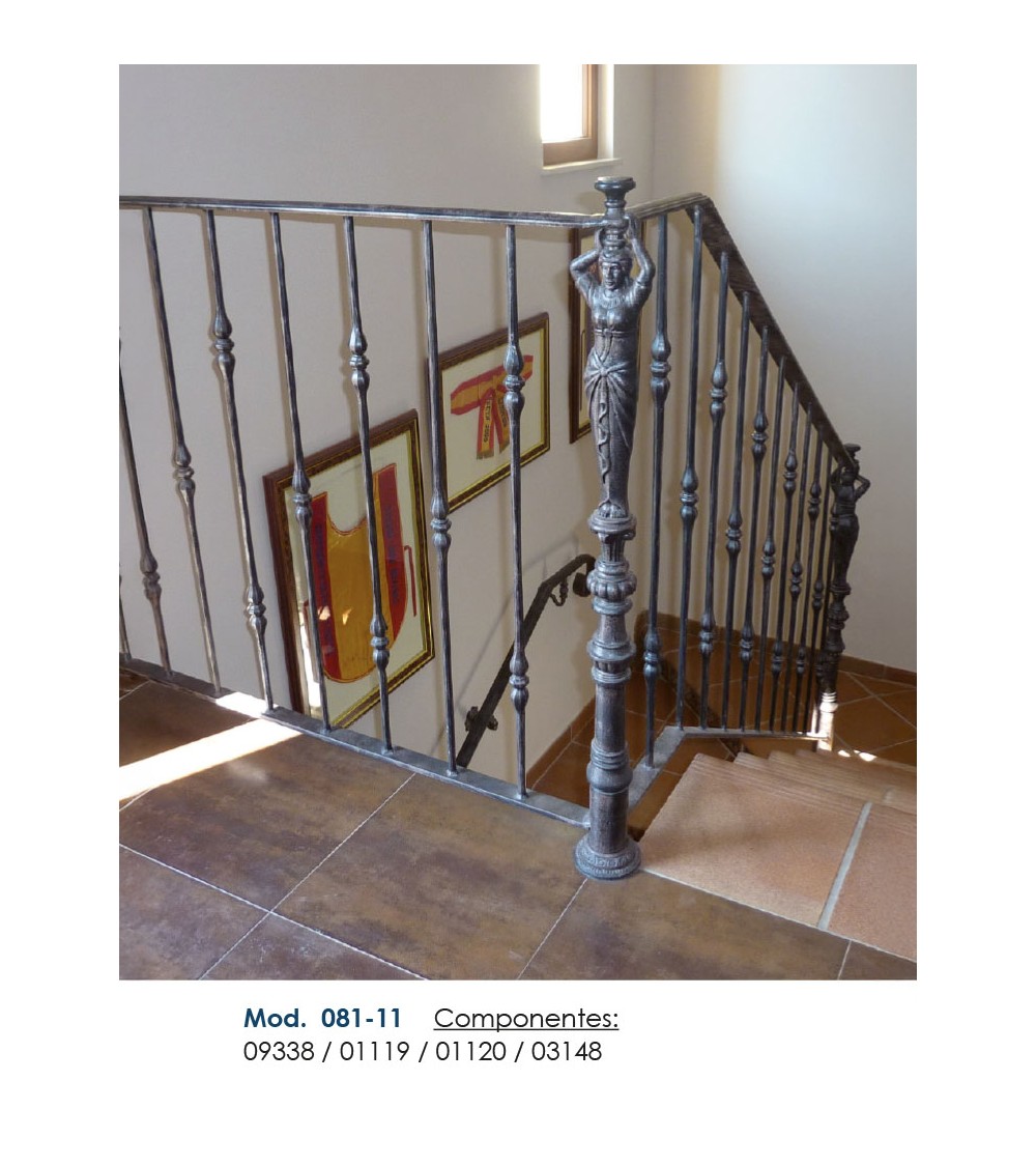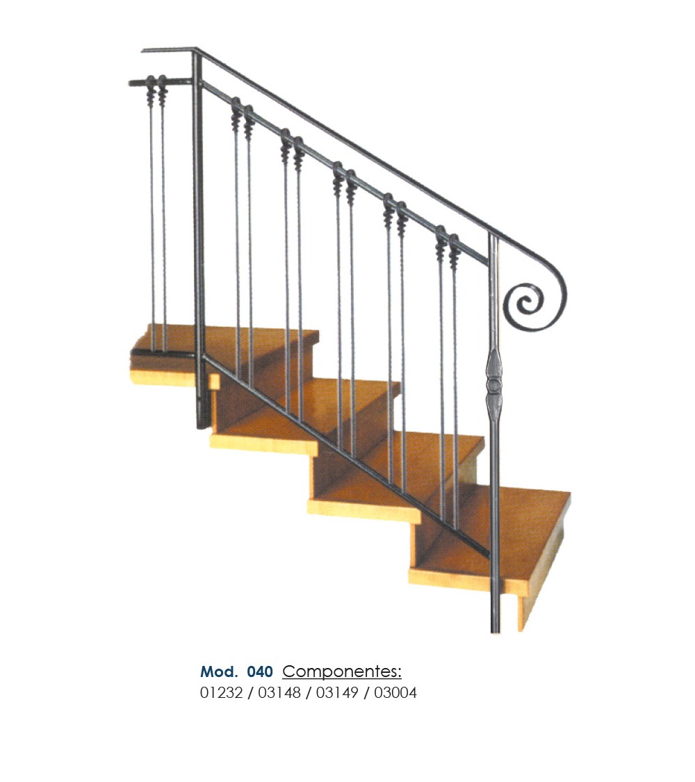 Pasamanos de hierro forjado utilizado como forja decorativa fabricado con hierro dulce, maleable y forjado en caliente para el montaje de barandales o barandillas con referencia 03148 y referencia 03148.03: