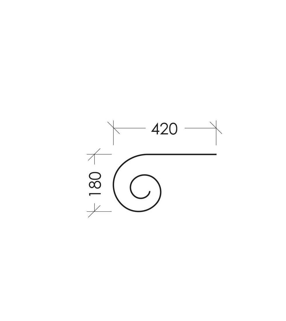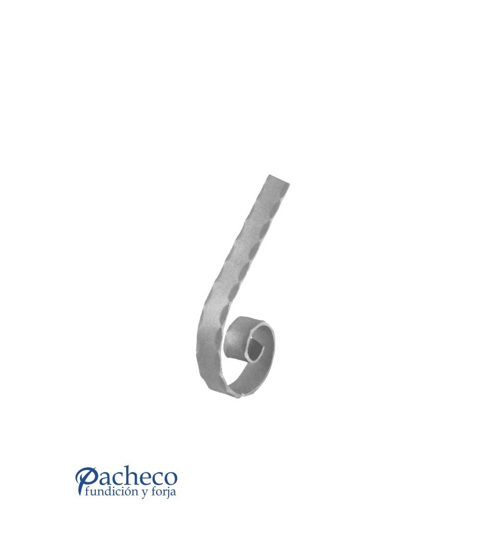 Remate de pasamanos de hierro forjado utilizado como forja decorativa fabricado con hierro dulce, maleable y forjado en caliente. Este accesorio en hierro forjado se utiliza para sujeciones de barandas de hierro forjado, barandillas de hierro forjado, balcones, cancelas, cenefas para rejas, cercas, vallas, enrejados La medida estándar es de 420 mm de largo x 180 mm ancho Se utiliza con las referencia 03169 Piezas y accesorios para forja a medida, también realizamos cualquier diseño de forja decorativa y forja artística. Consulta a nuestro equipo de diseño especializado. Aquí los límites del metal, los pones tú. Llámanos para informarte al 923 24 33 98 o escríbenos a info@pachecoforja.com