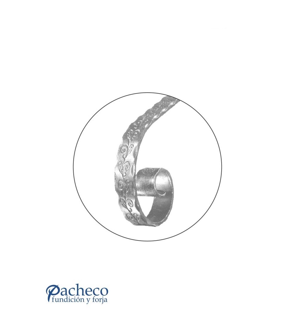 Remate para Pasamanos de Forja de Caracol con Estampación Floral y Cantos Labrados Pletina 40x8 mm