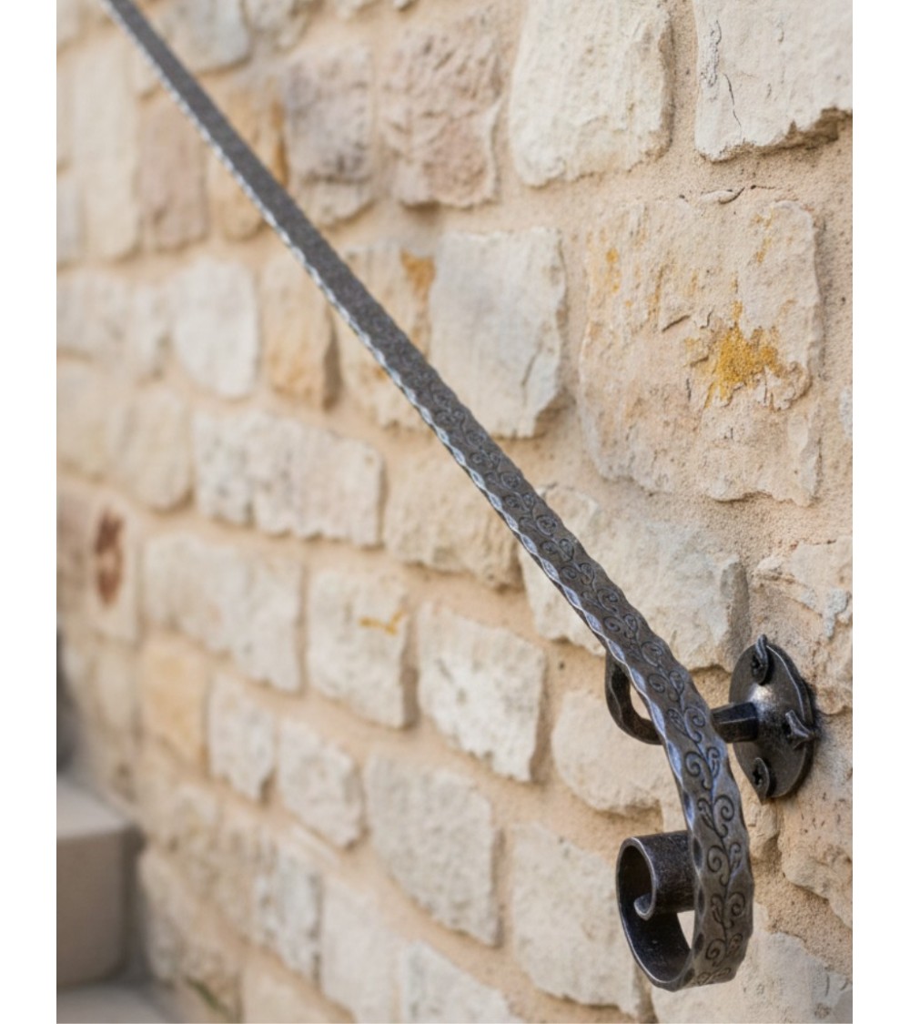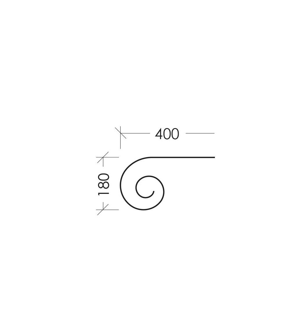 Remate de pasamanos de hierro forjado utilizado como forja decorativa fabricado con hierro dulce, maleable y forjado en caliente. Este accesorio en hierro forjado se utiliza para sujeciones de barandas de hierro forjado, barandillas de hierro forjado, balcones, cancelas, cenefas para rejas, cercas, vallas, enrejados La medida estándar es de 400 mm de largo x 180 mm ancho Se utiliza con las referencias 03177 Piezas y accesorios para forja a medida, también realizamos cualquier diseño de forja decorativa y forja artística. Consulta a nuestro equipo de diseño especializado. Aquí los límites del metal, los pones tú. Llámanos para informarte al 923 24 33 98 o escríbenos a info@pachecoforja.com