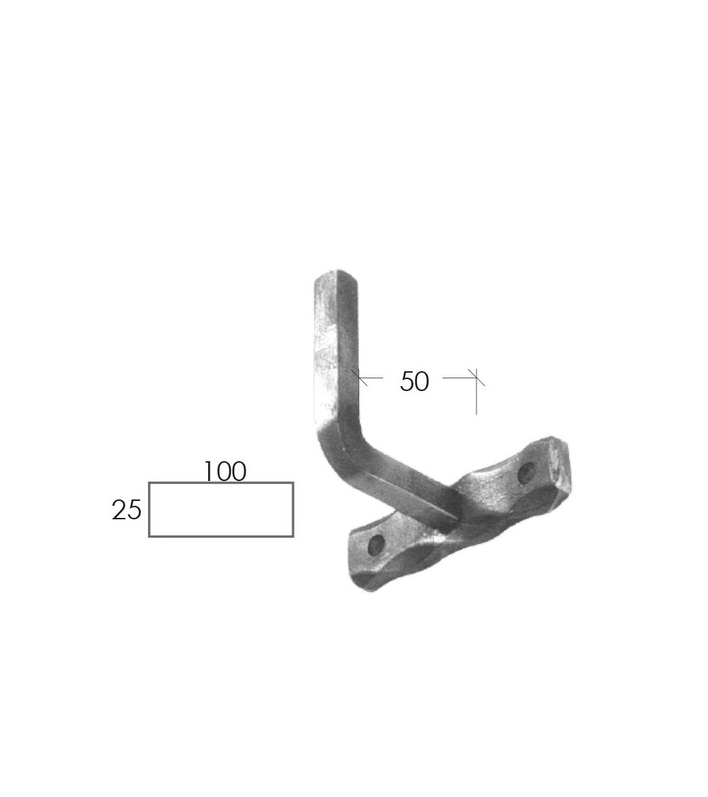 · Soporte de hierro forjado tipo machado, diseñado para la instalación de pasamanos cuadrados o de pletina en barandillas y escaleras de forja.