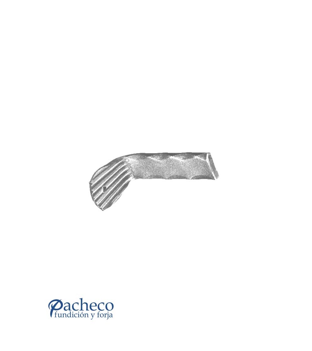 Soporte de hierro forjado como sujeción fabricado con hierro dulce, maleable y forjado en caliente. Este accesorio en hierro forjado se utiliza como soporte en verjas de forja o celosías de hierro forjado. Se puede combinar con balaustres. La medida estándar es de 65 mm alto x 120 mm ancho. Piezas y accesorios para forja a medida, también realizamos cualquier diseño de forja decorativa y forja artística. Consulta a nuestro equipo de diseño especializado. Aquí los límites del metal, los pones tú. Llámanos para informarte al 923 24 33 98 o escríbenos a info@pachecoforja.com