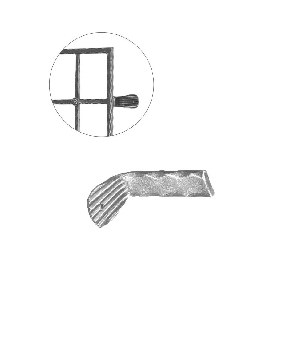 Soporte de escalera de hierro forjado utilizado como soporte de forja decorativa en barrotes de forja o verjas de forja. Fabricado con hierro dulce, maleable y forjado en caliente para la sujeción de escaleras de forja con referencia 07207: