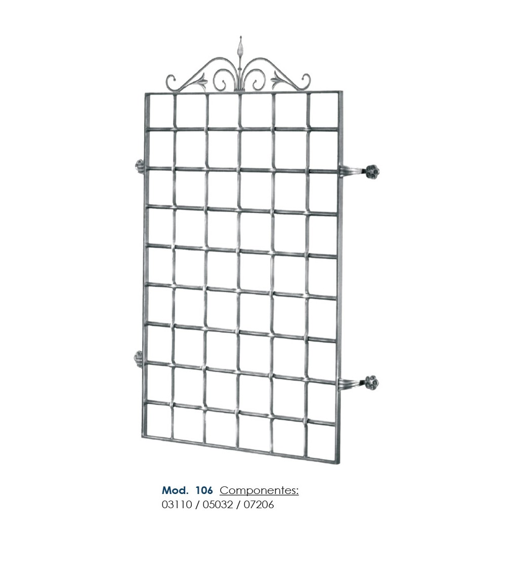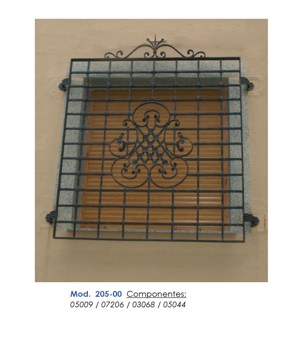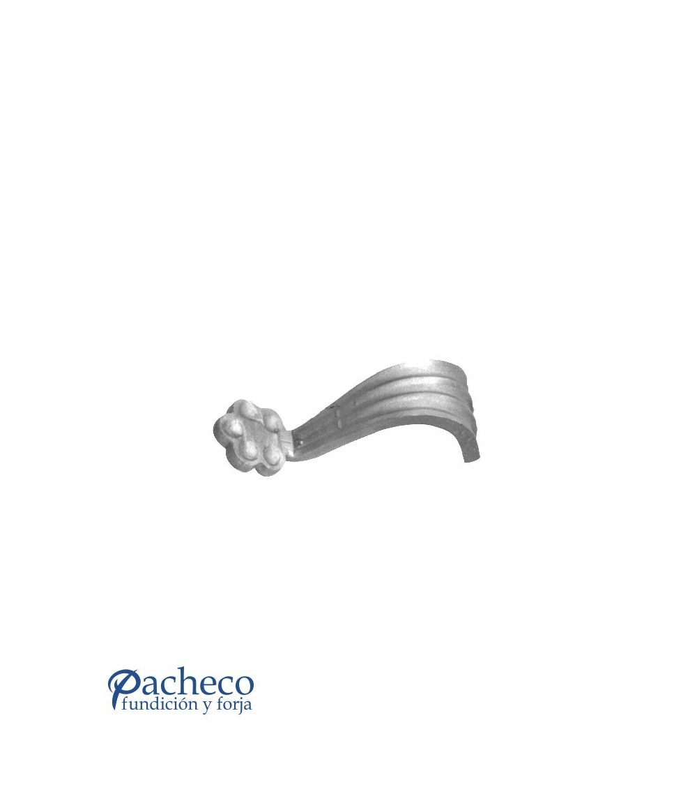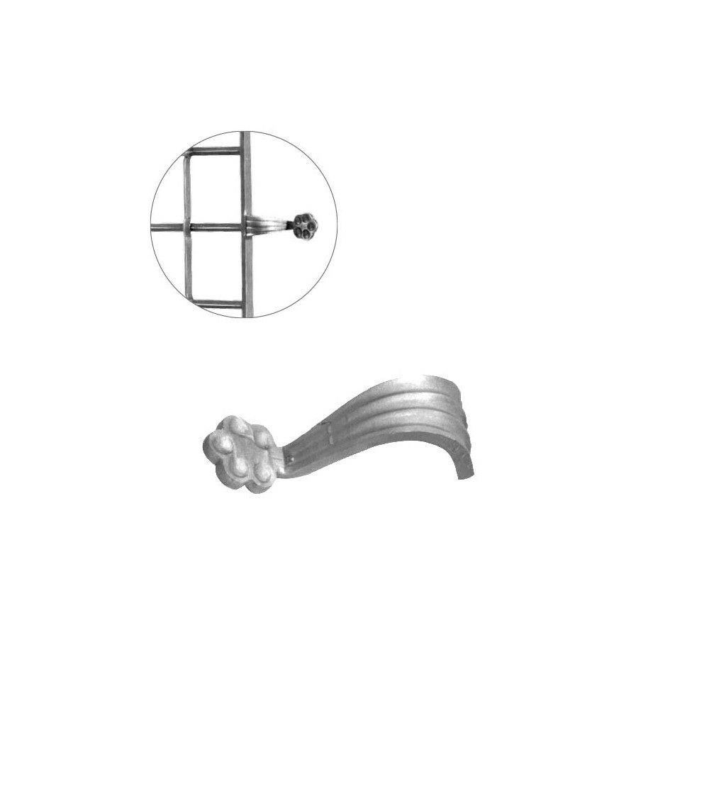 Soporte de hierro forjado utilizado como soporte de forja decorativa en barrotes de forja o verjas de forja. Fabricado con hierro dulce, maleable y forjado en caliente para la sujeción de escaleras de forja con referencia 07206: