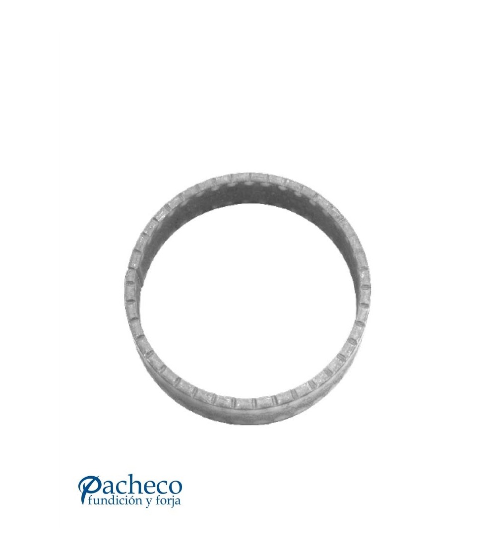 Aro de hierro forjado martilleado utilizado como adorno de forja decorativa. Fabricado con hierro dulce, maleable y forjado en caliente para la sujeción de rejas o vallas de hierro forjado con referencias: