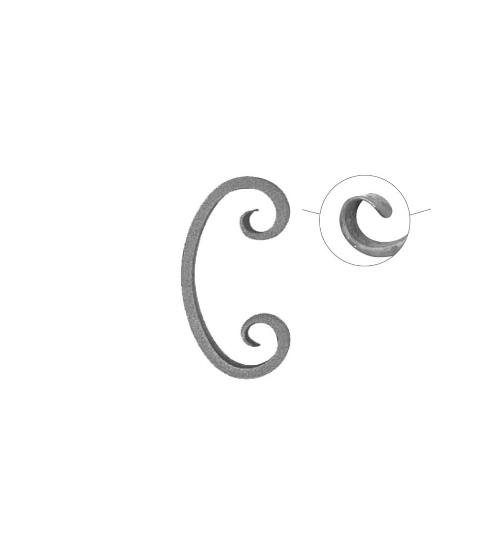 · Este accesorio en hierro forjado se utiliza como adorno de forja para rejas, ventanas de forja o balcones de forja. Se combina con balaustres.