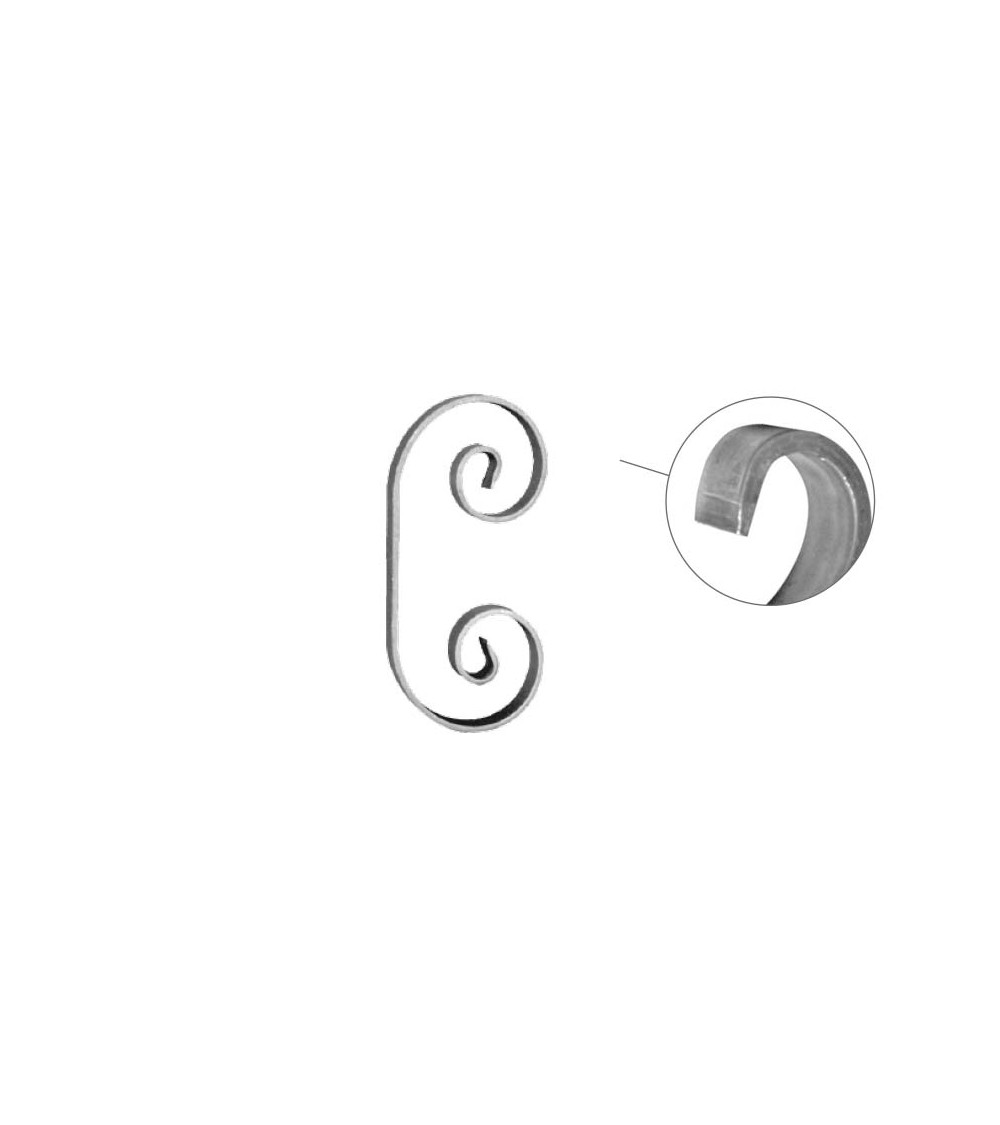 · Este accesorio en hierro forjado se utiliza como adorno de forja para rejas, ventanas de forja o balcones de forja. Se combina con balaustres.