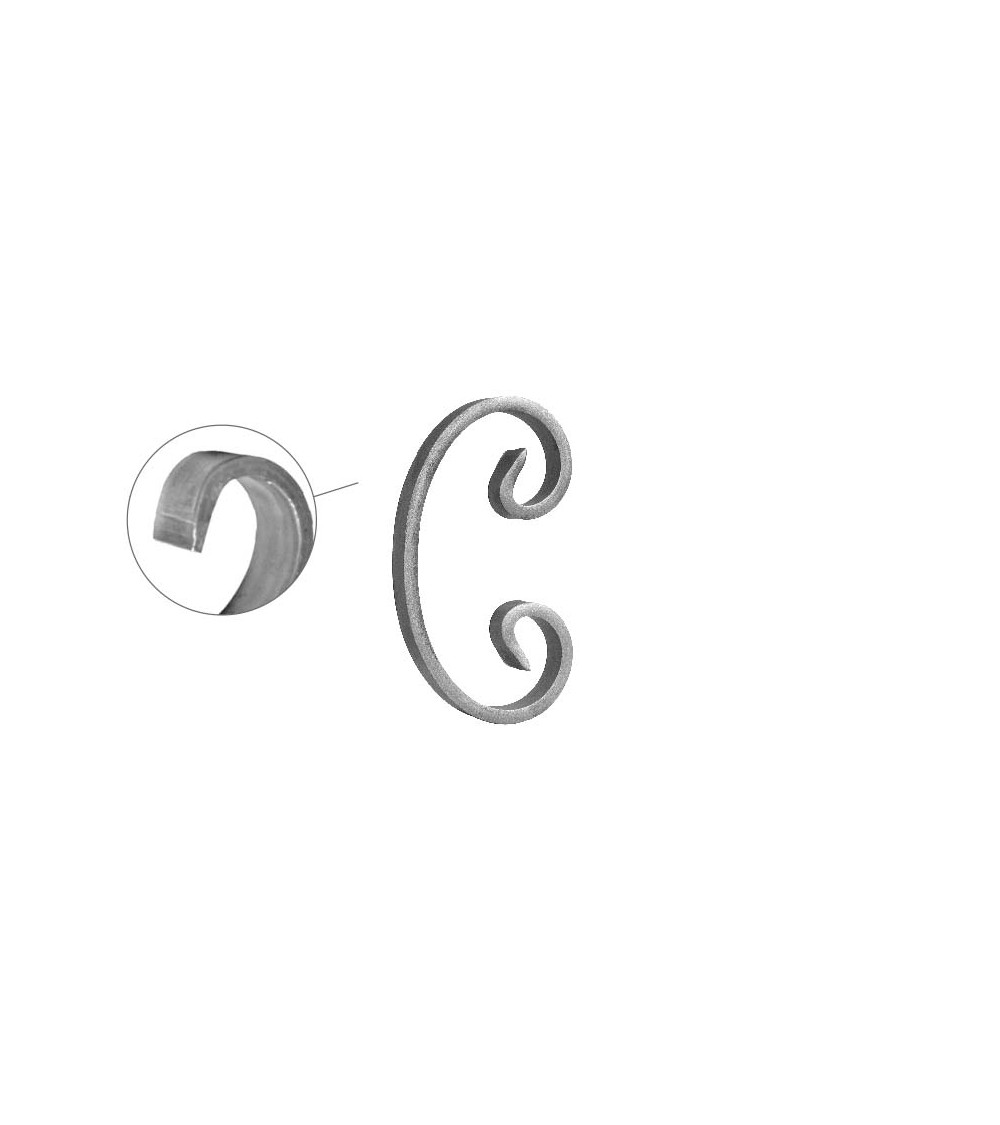 · Este accesorio en hierro forjado se utiliza como adorno de forja para rejas, ventanas de forja o balcones de forja. Se combina con balaustres.