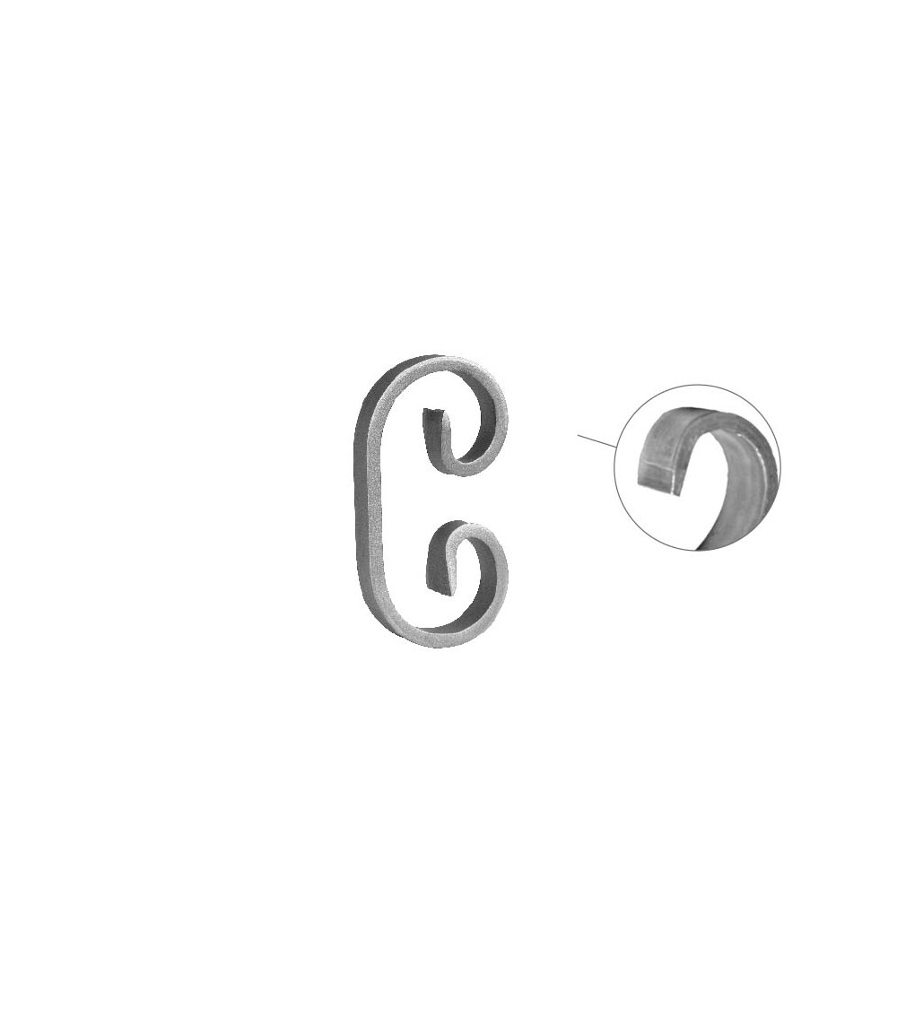 · Este accesorio en hierro forjado se utiliza como adorno de forja para rejas, ventanas de forja o balcones de forja. Se combina con balaustres.