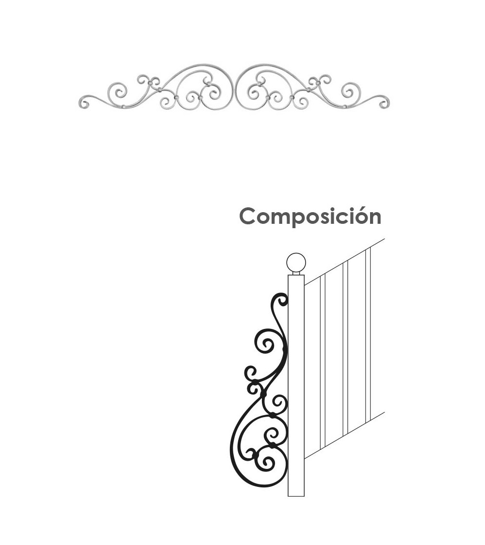 · Esta balaustrada de hierro forjado se emplea en la fabricación de barandas, barandales de forja, balcones, cancelas ,cenefas para rejas, cercas, vallas, enrejados