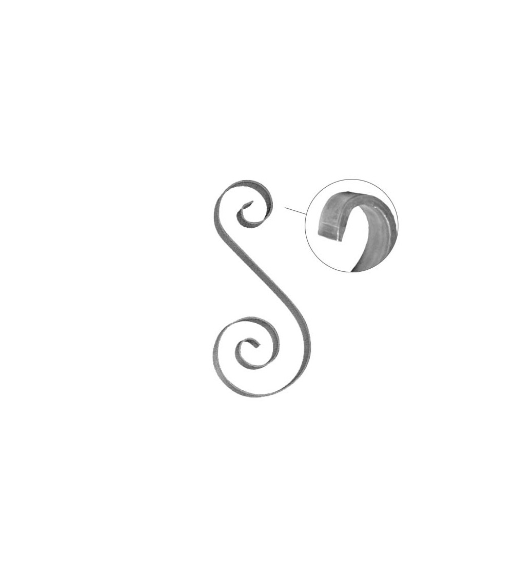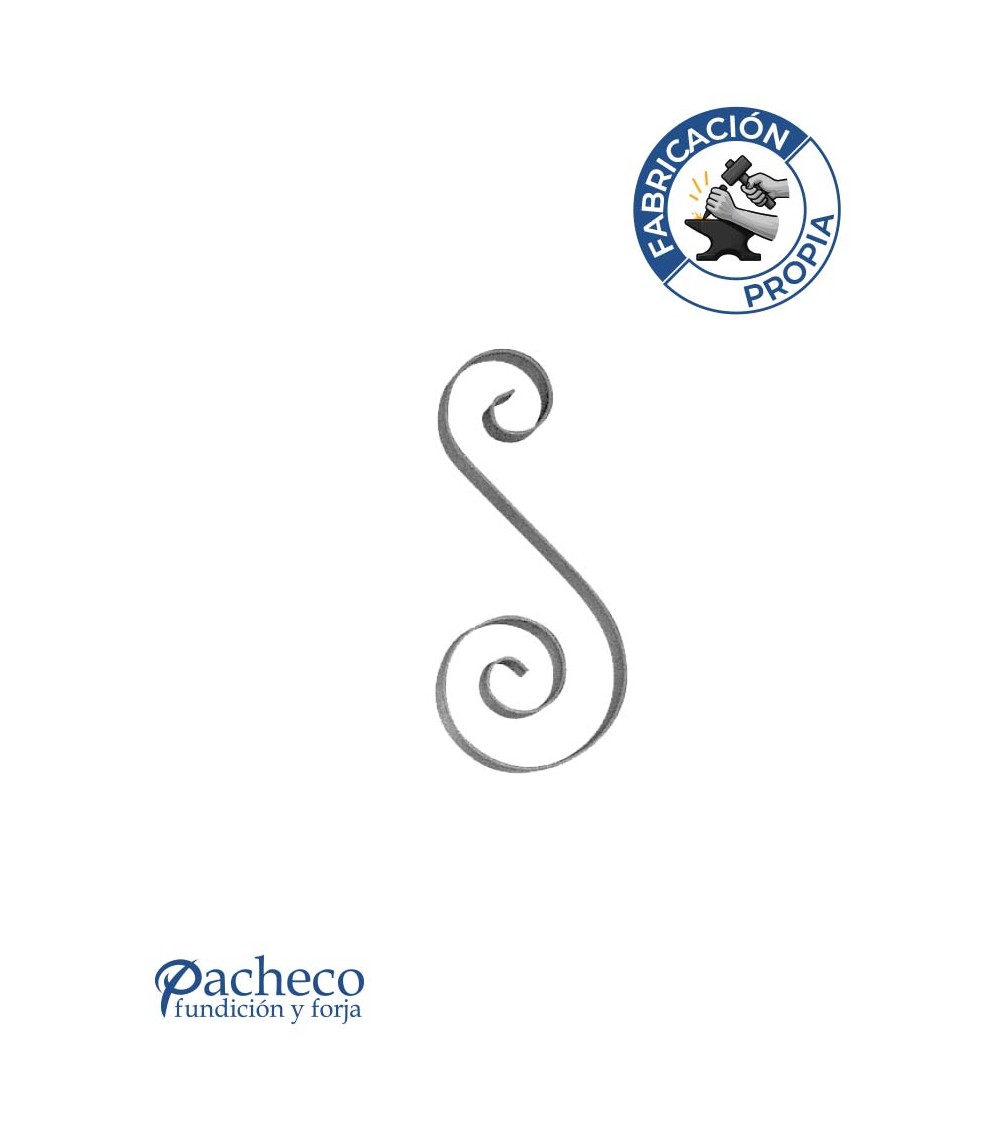 Ese de hierro forjado utilizado como adorno de forja decorativa. Fabricado con hierro dulce, maleable y forjado en caliente para la sujeción de rejas o vallas de hierro forjado con referencias: