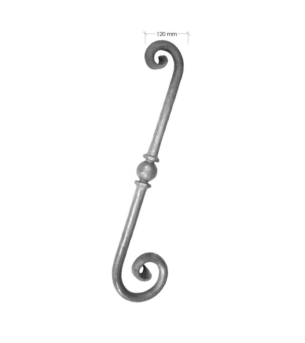 · El diseño es una composición de doble caracol o espiral de forja con adorno de forja central.