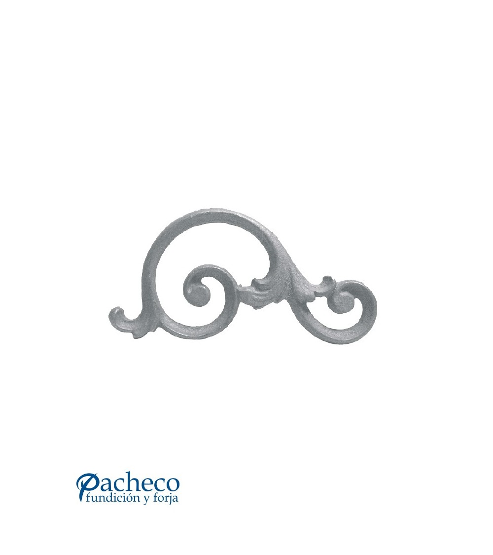 Pieza central de hierro fundido utilizado como forja decorativa fabricado con hierro fundido con molde. Se aconseja no galvanizar en caliente. Este accesorio en hierro fundido se utiliza como adorno en puertas de forja, ventanas de forja o balcones de forja. Se combina con balaustres de hierro forjado o balaustres de hierro fundido. La medida estándar es 135 mm alto x 125 mm ancho. Piezas y accesorios de hierro fundido a medida, también realizamos cualquier diseño de hierro fundido y forja decorativa. Consulta a nuestro equipo de diseño especializado. Aquí los límites del metal, los pones tú. Llámanos para informarte al 923 24 33 98 o escríbenos a info@pachecoforja.com