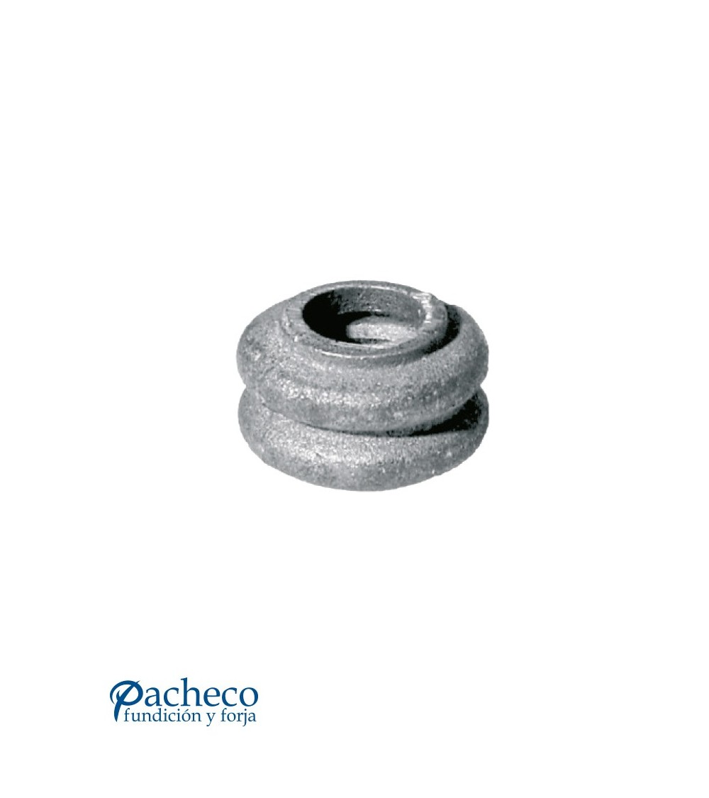 Macolla de hierro fundido utilizado como forja decorativa fabricado con hierro fundido con molde para tubo redondo. Se aconseja no galvanizar en caliente. Este accesorio en hierro fundido se utiliza como adorno en puertas de forja, ventanas de forja o balcones de forja. Se combina con balaustres de hierro forjado o balaustres de hierro fundido. La medida estándar es de 20 mm alto x 35 mm ancho. Piezas y accesorios de hierro fundido a medida, también realizamos cualquier diseño de hierro fundido y forja decorativa. Consulta a nuestro equipo de diseño especializado. Aquí los límites del metal, los pones tú. Llámanos para informarte al 923 24 33 98 o escríbenos a info@pachecoforja.com