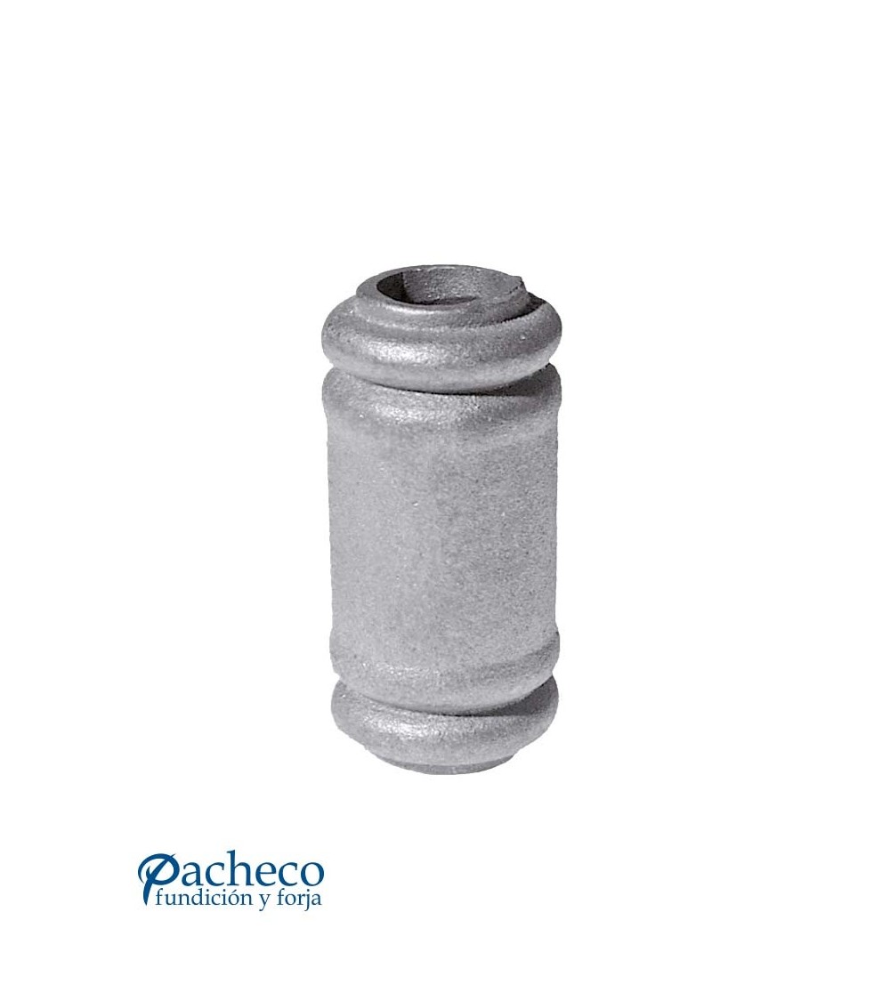Macolla de hierro fundido utilizado como forja decorativa fabricado con hierro fundido con molde para tubo redondo. Se aconseja no galvanizar en caliente. Este accesorio en hierro fundido se utiliza como adorno en puertas de forja, ventanas de forja o balcones de forja. Se combina con balaustres de hierro forjado o balaustres de hierro fundido. La medida estándar es de 90 mm alto x 42 mm ancho. Piezas y accesorios de hierro fundido a medida, también realizamos cualquier diseño de hierro fundido y forja decorativa. Consulta a nuestro equipo de diseño especializado. Aquí los límites del metal, los pones tú. Llámanos para informarte al 923 24 33 98 o escríbenos a info@pachecoforja.com