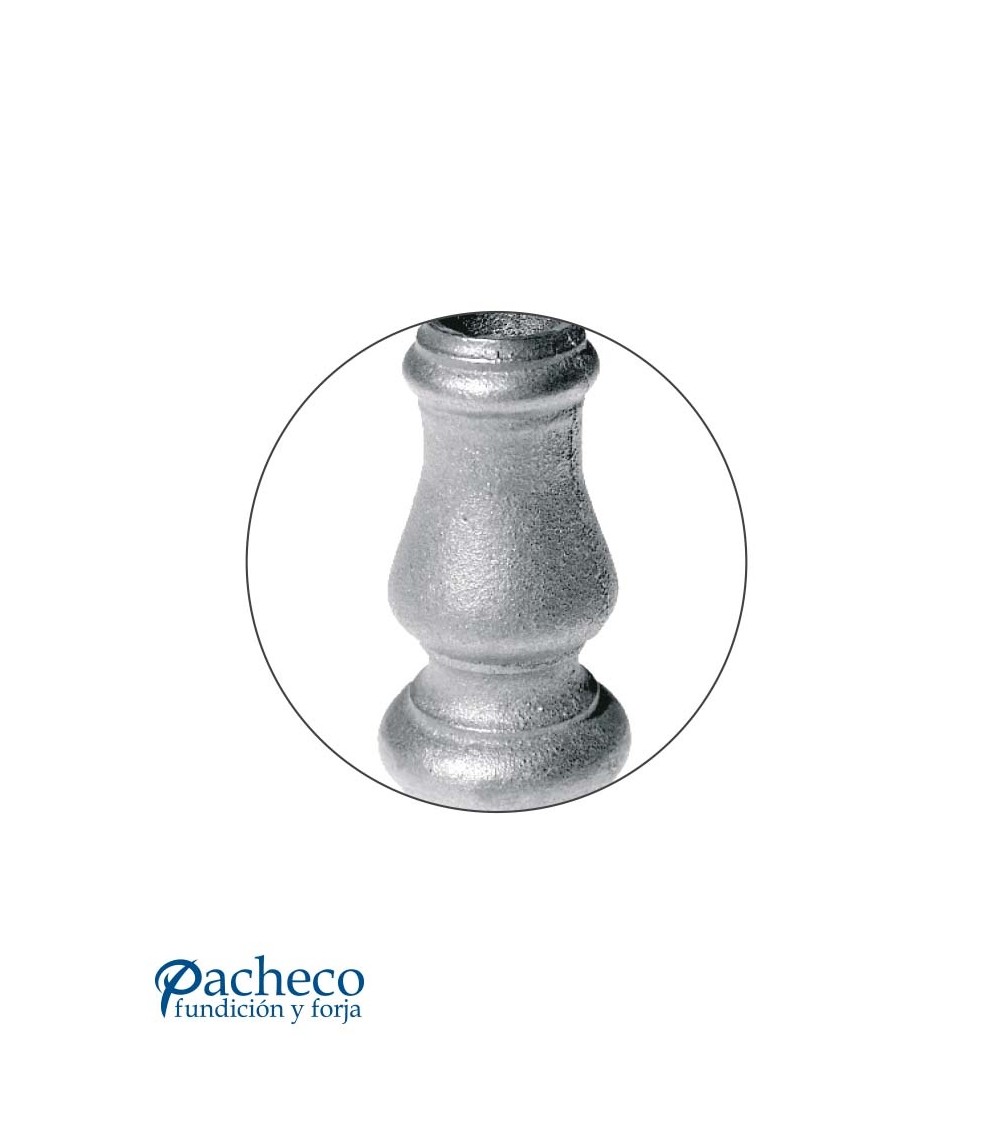 Base de hierro fundido utilizado como forja decorativa fabricado con hierro fundido con molde para tubo redondo. Se aconseja no galvanizar en caliente. Este accesorio en hierro fundido se utiliza como adorno en puertas de forja, ventanas de forja o balcones de forja. Se combina con balaustres de hierro forjado o balaustres de hierro fundido. La medida estándar 78 mm alto x 38 mm ancho. Piezas y accesorios de hierro fundido a medida, también realizamos cualquier diseño de hierro fundido y forja decorativa. Consulta a nuestro equipo de diseño especializado. Aquí los límites del metal, los pones tú. Llámanos para informarte al 923 24 33 98 o escríbenos a info@pachecoforja.com