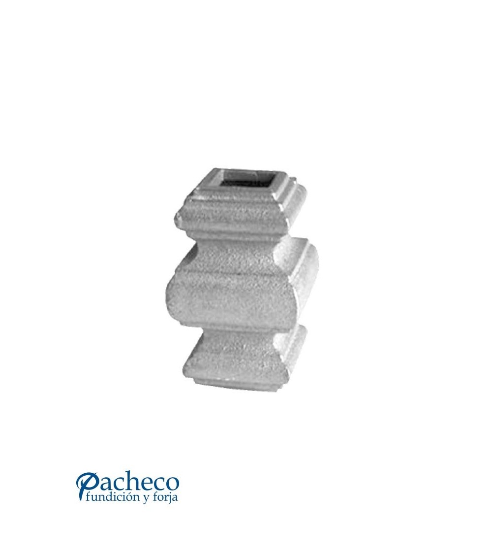 Macolla de hierro fundido utilizado como forja decorativa fabricado con hierro fundido con molde para tubo cuadrado. Se aconseja no galvanizar en caliente. Este accesorio en hierro fundido se utiliza como adorno en puertas de forja, ventanas de forja o balcones de forja. Se combina con balaustres de hierro forjado o balaustres de hierro fundido. La medida estándar es de 70 mm alto x 40 mm ancho. Piezas y accesorios de hierro fundido a medida, también realizamos cualquier diseño de hierro fundido y forja decorativa. Consulta a nuestro equipo de diseño especializado. Aquí los límites del metal, los pones tú. Llámanos para informarte al 923 24 33 98 o escríbenos a info@pachecoforja.com