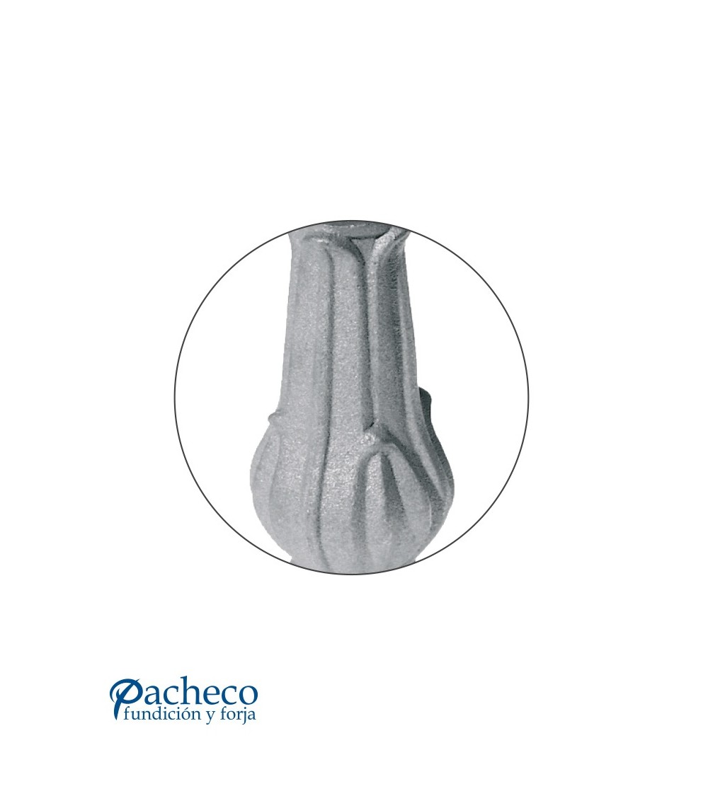 Cebolleta de hierro fundido utilizado como forja decorativa fabricado con hierro fundido con molde para tubo redondo. Se aconseja no galvanizar en caliente. Este accesorio en hierro fundido se utiliza como adorno en puertas de forja, ventanas de forja o balcones de forja. Se combina con balaustres de hierro forjado o balaustres de hierro fundido. Hay diferentes medida estándar. Piezas y accesorios de hierro fundido a medida, también realizamos cualquier diseño de hierro fundido y forja decorativa. Consulta a nuestro equipo de diseño especializado. Aquí los límites del metal, los pones tú. Llámanos para informarte al 923 24 33 98 o escríbenos a info@pachecoforja.com