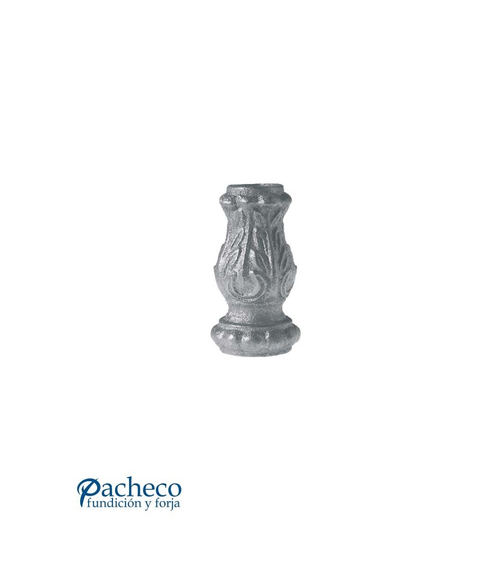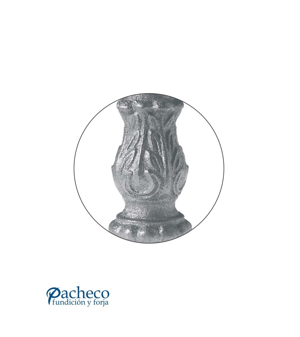 Base de hierro fundido utilizado como forja decorativa fabricado con hierro fundido con molde para tubo redondo. Se aconseja no galvanizar en caliente. Este accesorio en hierro fundido se utiliza como adorno en puertas de forja, ventanas de forja o balcones de forja. Se combina con balaustres de hierro forjado o balaustres de hierro fundido. Hay diferentes medidas estándar. Piezas y accesorios de hierro fundido a medida, también realizamos cualquier diseño de hierro fundido y forja decorativa. Consulta a nuestro equipo de diseño especializado. Aquí los límites del metal, los pones tú. Llámanos para informarte al 923 24 33 98 o escríbenos a info@pachecoforja.com
