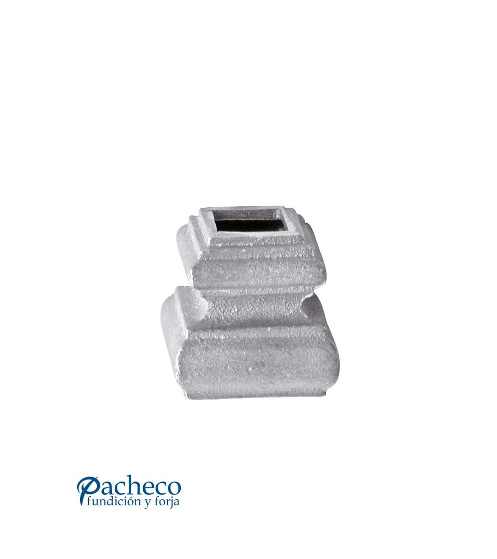 Base de hierro fundido utilizado como forja decorativa fabricado con hierro fundido con molde para tubo cuadrado. Se aconseja no galvanizar en caliente. Este accesorio en hierro fundido se utiliza como adorno en puertas de forja, ventanas de forja o balcones de forja. Se combina con balaustres de hierro forjado o balaustres de hierro fundido. Hay diferentes medida estándar. Piezas y accesorios de hierro fundido a medida, también realizamos cualquier diseño de hierro fundido y forja decorativa. Consulta a nuestro equipo de diseño especializado. Aquí los límites del metal, los pones tú. Llámanos para informarte al 923 24 33 98 o escríbenos a info@pachecoforja.com