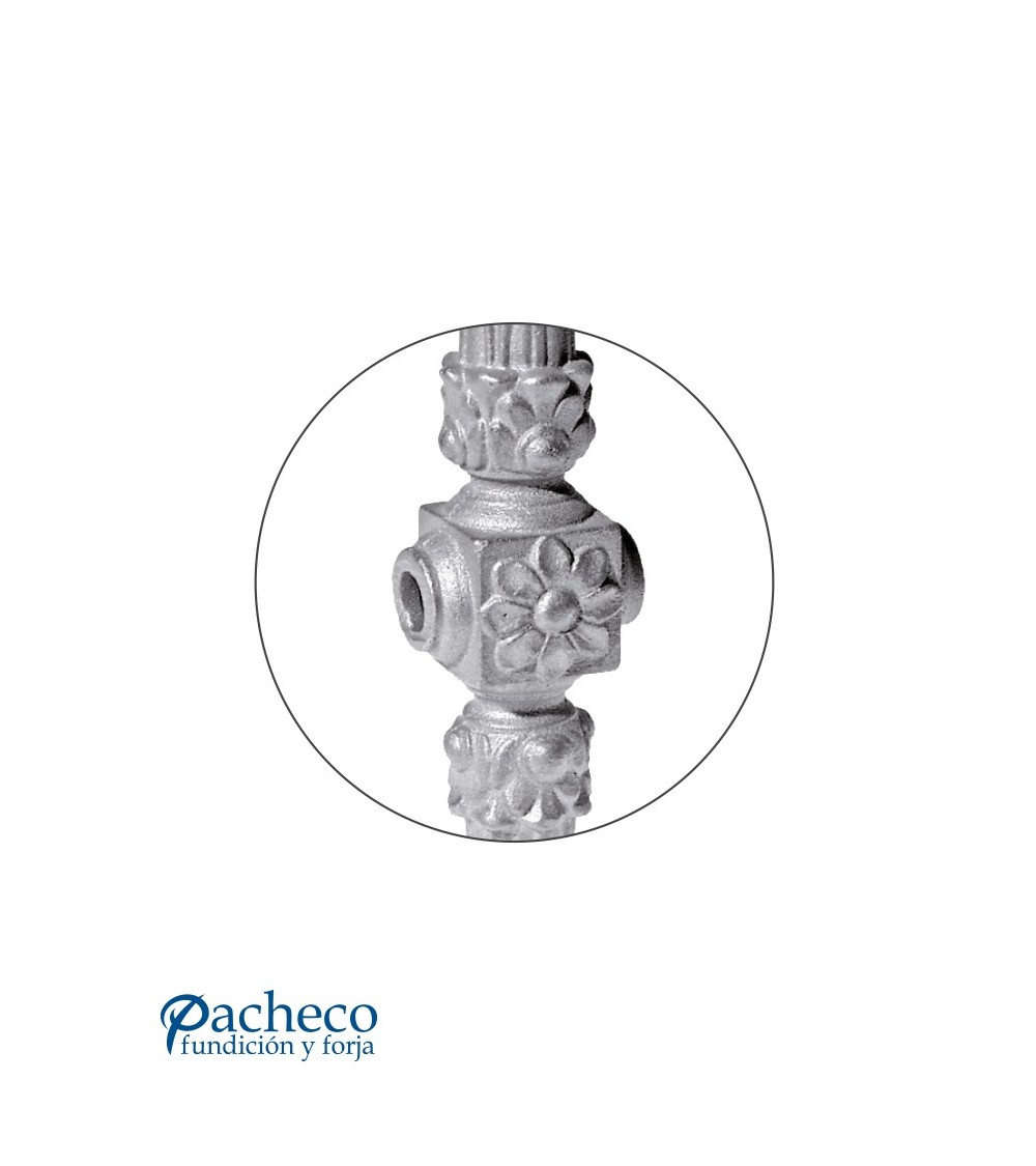 Macolla de hierro fundido utilizado como adorno de forja decorativa. Fabricado con hierro fundido con molde para tubo redondo utilizado como macolla central para la composición de rejas o vallas de hierro forjado con referencia 09122: