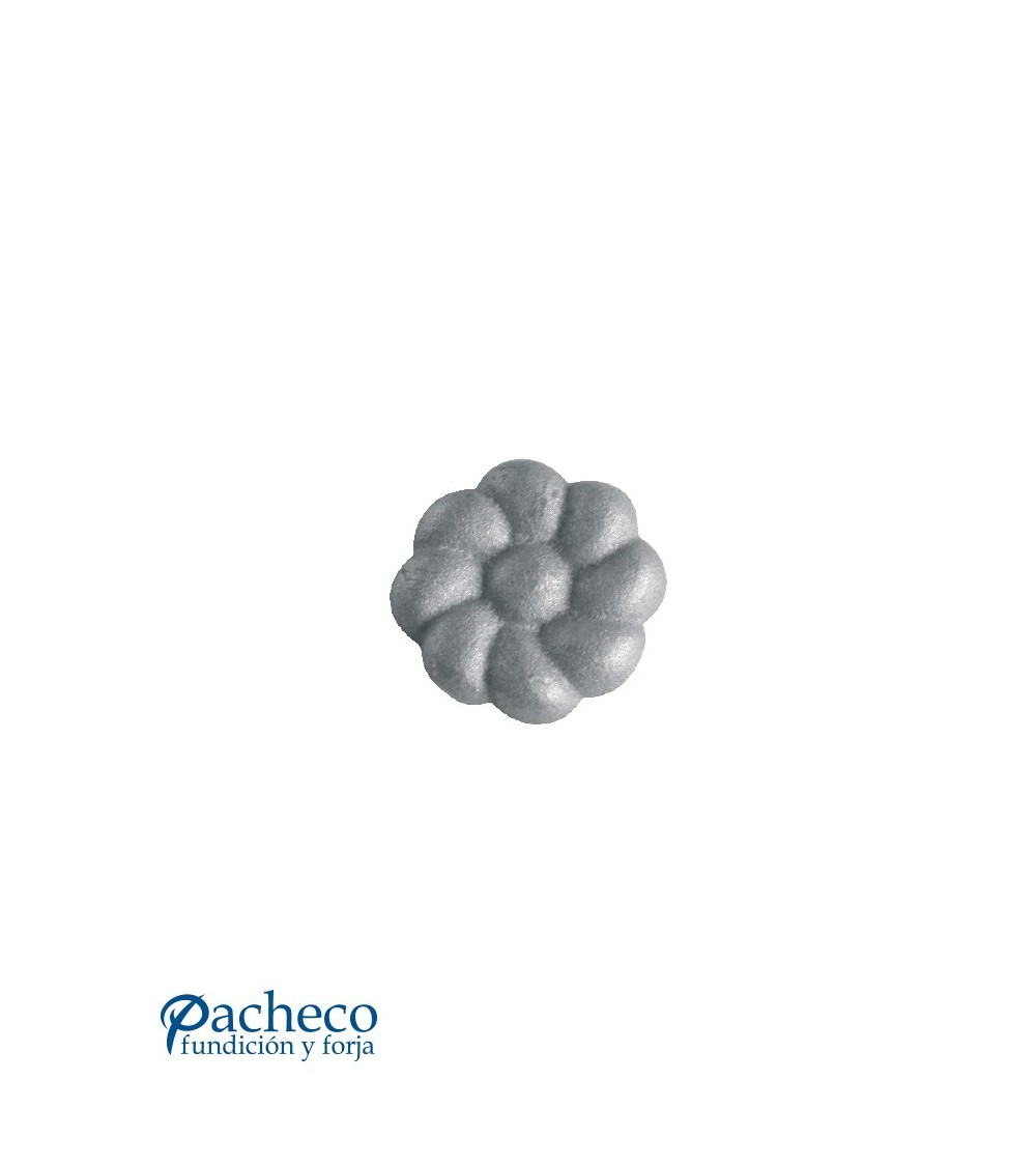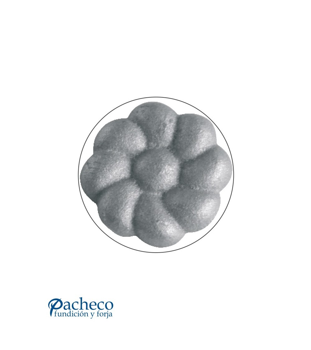 Rosetón de hierro fundido utilizado como forja decorativa fabricado con hierro fundido con molde. Se aconseja no galvanizar en caliente. Este accesorio en hierro fundido se utiliza como adorno en puertas de forja, ventanas de forja o balcones de forja. Va soldado en balaustres de hierro forjado o balaustres de hierro fundido. La medida estándar es 45 mm alto x 45 mm ancho. Piezas y accesorios de hierro fundido a medida, también realizamos cualquier diseño de hierro fundido y forja decorativa. Consulta a nuestro equipo de diseño especializado. Aquí los límites del metal, los pones tú. Llámanos para informarte al 923 24 33 98 o escríbenos a info@pachecoforja.com