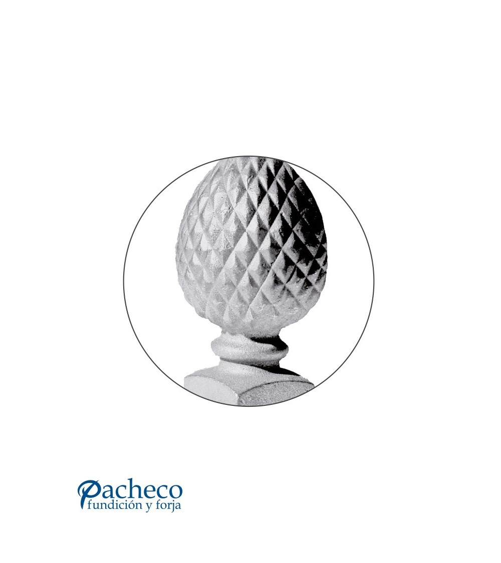 Macolla de hierro fundido utilizado como forja decorativa fabricado con hierro fundido con molde para tubo redondo. Se aconseja no galvanizar en caliente. Este accesorio en hierro fundido se utiliza como adorno en puertas de forja, ventanas de forja o balcones de forja. Se combina con balaustres de hierro forjado o balaustres de hierro fundido. La medida estándar es de 20 mm alto x 35 mm ancho. Piezas y accesorios de hierro fundido a medida, también realizamos cualquier diseño de hierro fundido y forja decorativa. Consulta a nuestro equipo de diseño especializado. Aquí los límites del metal, los pones tú. Llámanos para informarte al 923 24 33 98 o escríbenos a info@pachecoforja.com