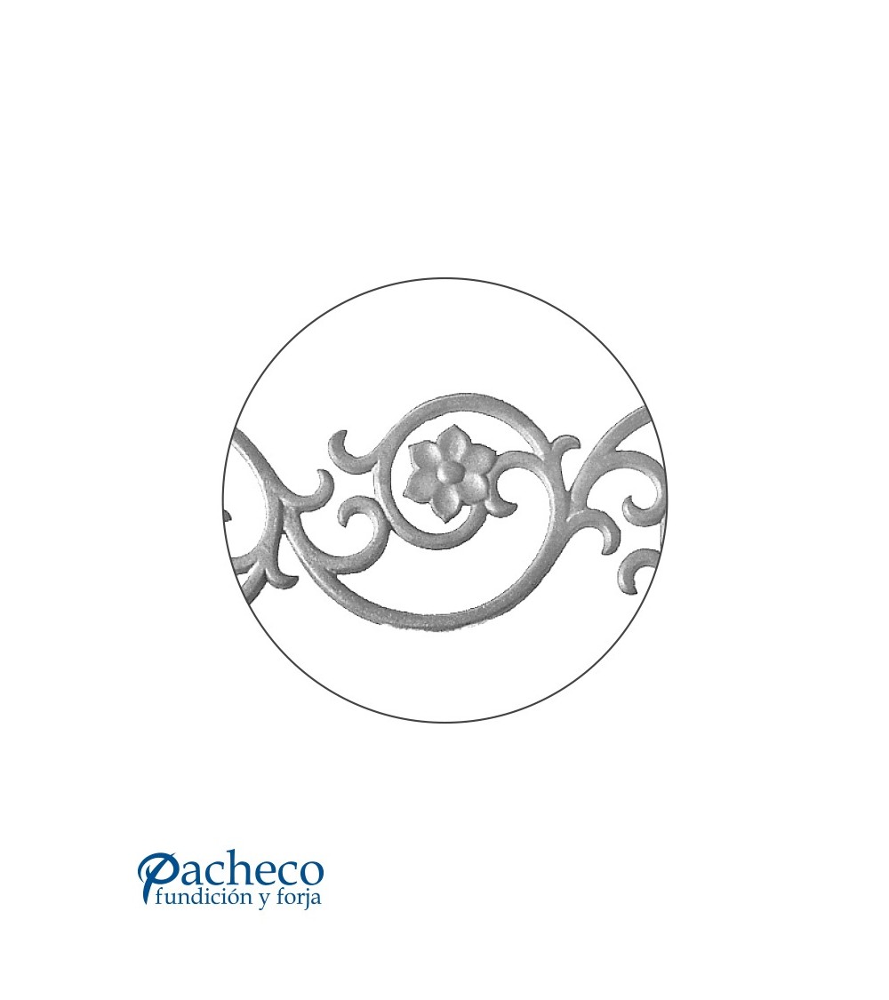 Solera de hierro fundido utilizado como forja decorativa fabricado con hierro fundido con molde. Se aconseja no galvanizar en caliente. Este accesorio en hierro fundido se utiliza en el extremo inferior de puertas de forja, ventanas de forja o balcones de forja. Se combina con balaustres de hierro forjado o balaustres de hierro fundido. La medida estándar es 160 mm alto x 975 mm ancho. Piezas y accesorios de hierro fundido a medida, también realizamos cualquier diseño de hierro fundido y forja decorativa. Consulta a nuestro equipo de diseño especializado. Aquí los límites del metal, los pones tú. Llámanos para informarte al 923 24 33 98 o escríbenos a info@pachecoforja.com