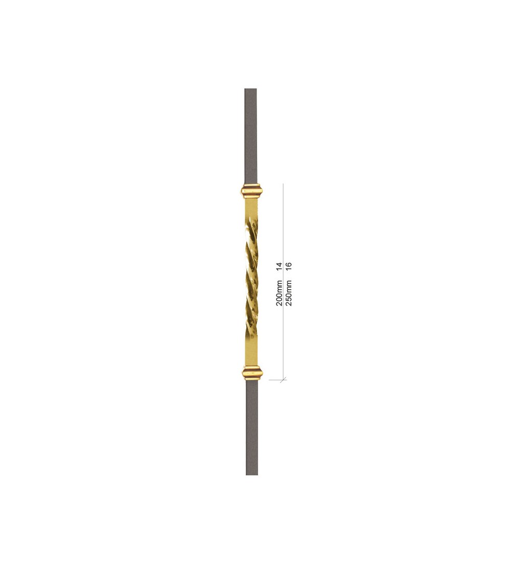 Barrote de forja con pieza central entorchada en latón brillo para rejas y accesos