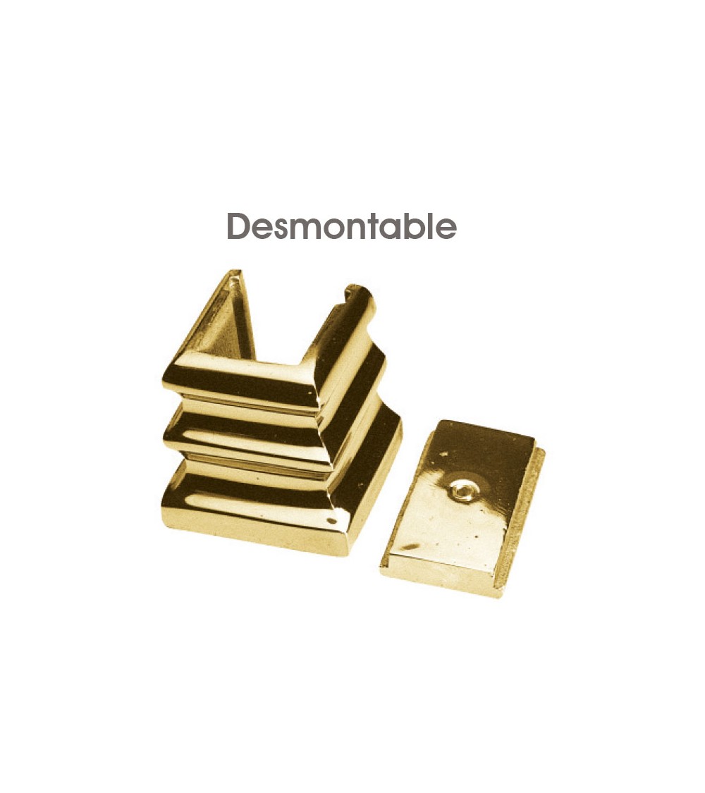 Base de latón desmontable acabado brillo utilizado como forja decorativa para tubo cuadrado. Este accesorio en latón se utiliza como adorno en puertas de forja, ventanas de forja o balcones de forja. Se combina con balaustres de hierro forjado, balaustres de hierro fundido o balaustre de aluminio fundido. La medida estándar es 40 mm alto x 38 mm ancho para cuadrado de 16 mm y 20 mm Piezas y accesorios de hierro a medida, también realizamos cualquier diseño de hierro, forja decorativa, latón, acero inoxidable... Consulta a nuestro equipo de diseño especializado. Aquí los límites del metal, los pones tú. Llámanos para informarte al 923 24 33 98 o escríbenos a info@pachecoforja.com