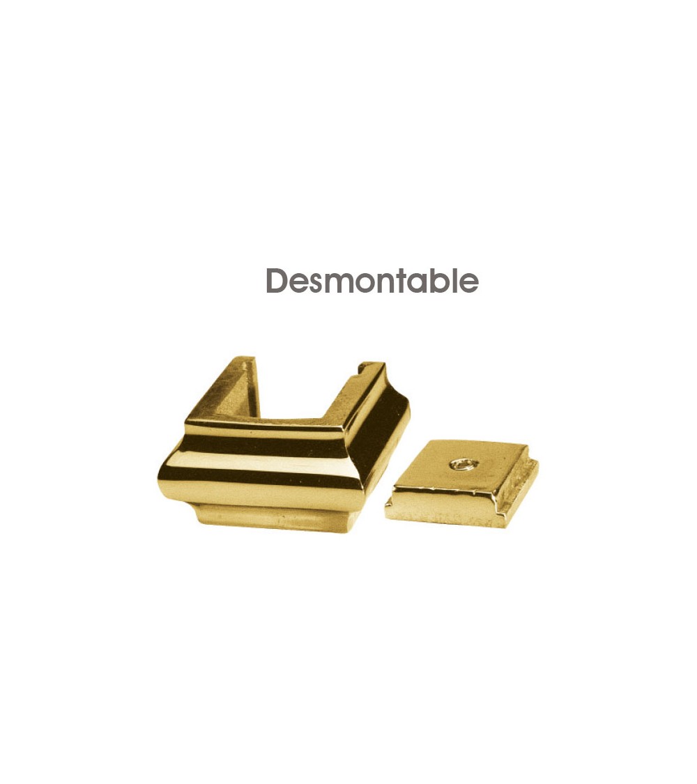 Macolla en latón brillo para barrote de forja cuadrado desmontable en puertas de forja y portales